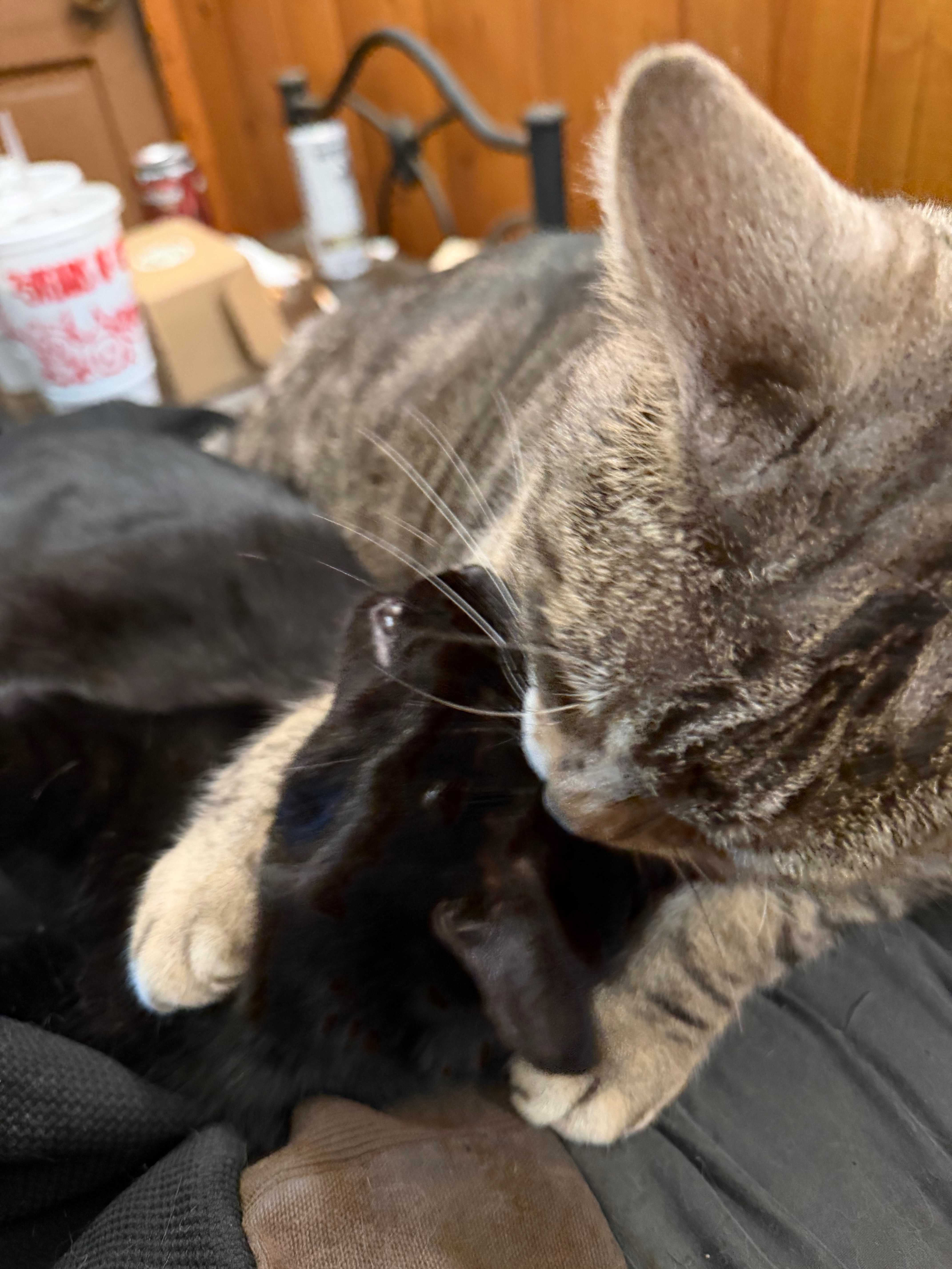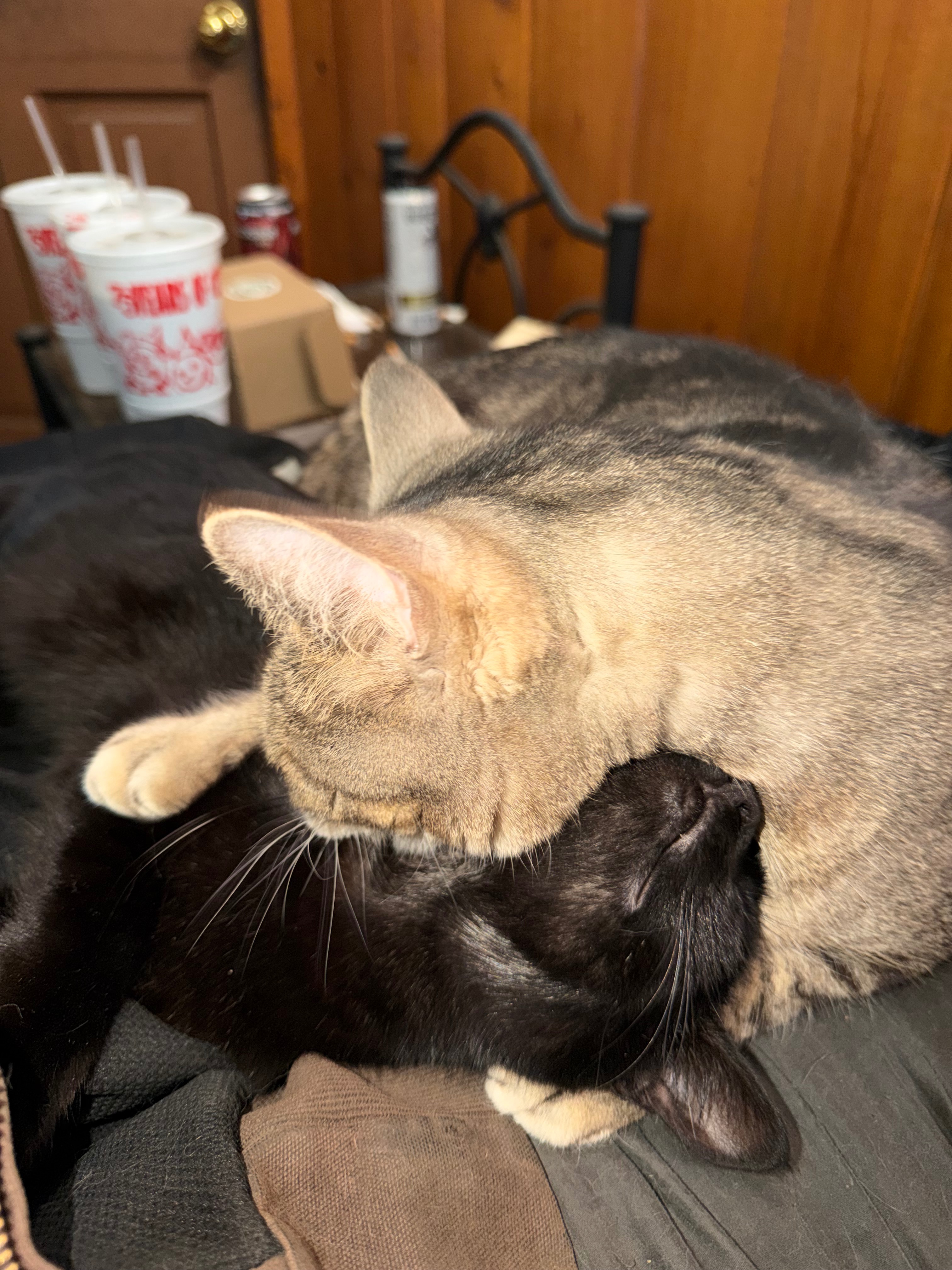 About two months ago, Luna started hanging around my apartment complex. At first, she was just a shadow—quick glimpses here and there, never staying for long. But about five weeks ago, I opened my door late at night and found her standing there, shaking and terribly skinny. I already have a seven-year-old cat named Sam, so I was worried about bringing Luna inside. Eventually, I coaxed her into a cat carrier and brought her in. That first night, Sam and Luna spent time separated by a door, getting to know each other. Since then, they’ve become thick as thieves.
