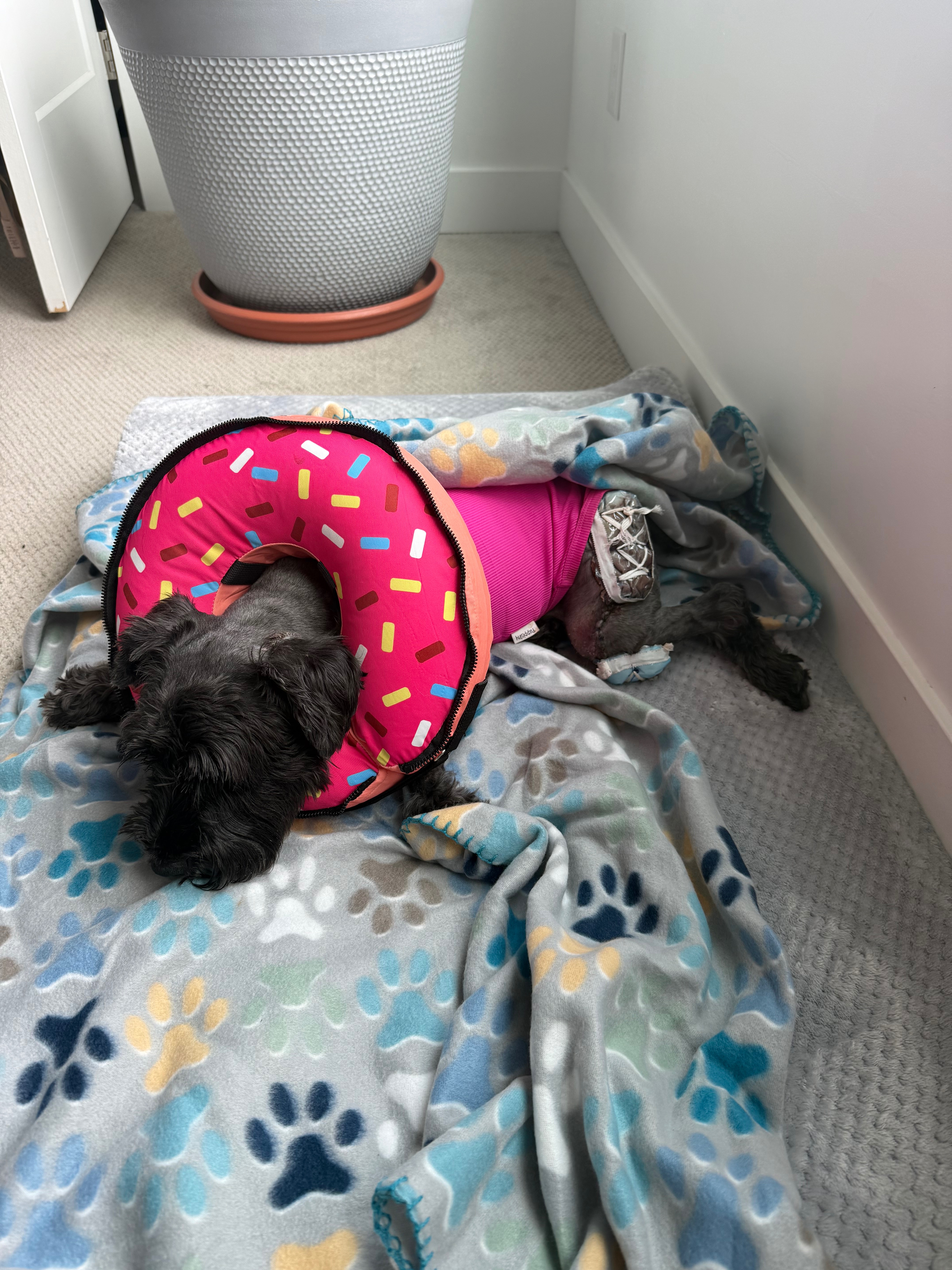 On September 11th, 2025, our family experienced a traumatic event that has left us struggling to help our beloved miniature schnauzer, Luna, recover. Luna has been a cherished part of our family for eight years, joining us shortly after my husband and I were married. She was a shy, nine-month-old rescue who quickly warmed up to us and has since been a constant companion through every major life event, including the birth of our two children. Luna is fiercely protective, loving, and has always been the heart of our adventures—camping, hiking, and road trips. She’s also adored by the other schnauzers in our extended family.