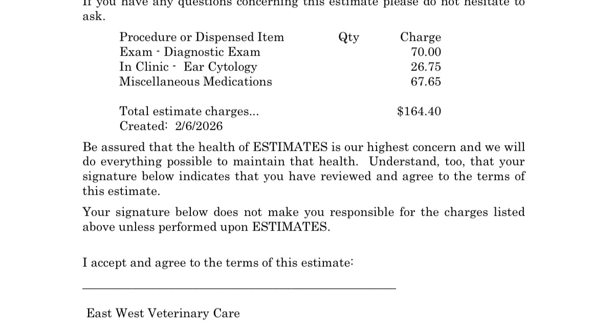 Lyla’s Vet Info is below.
