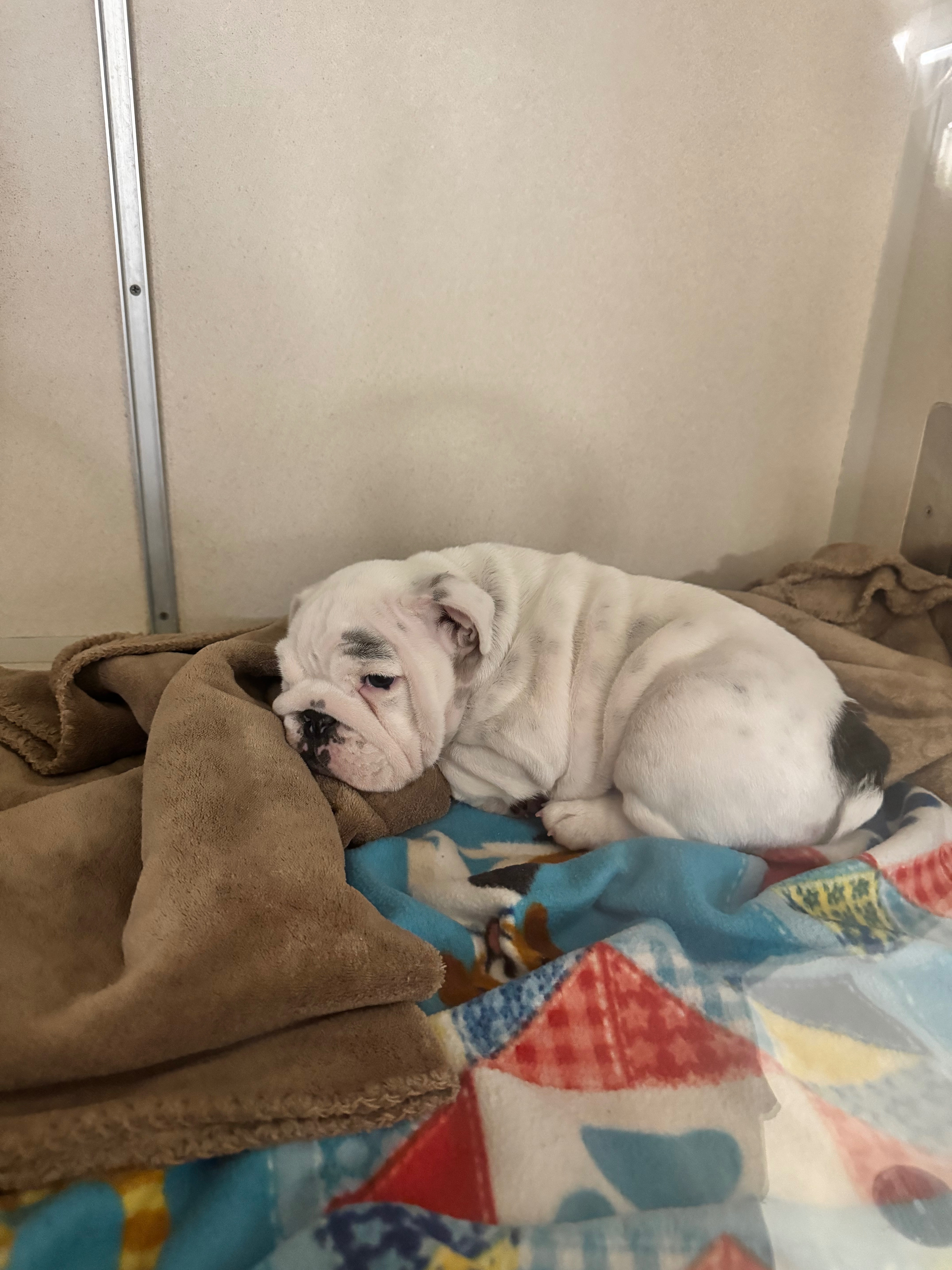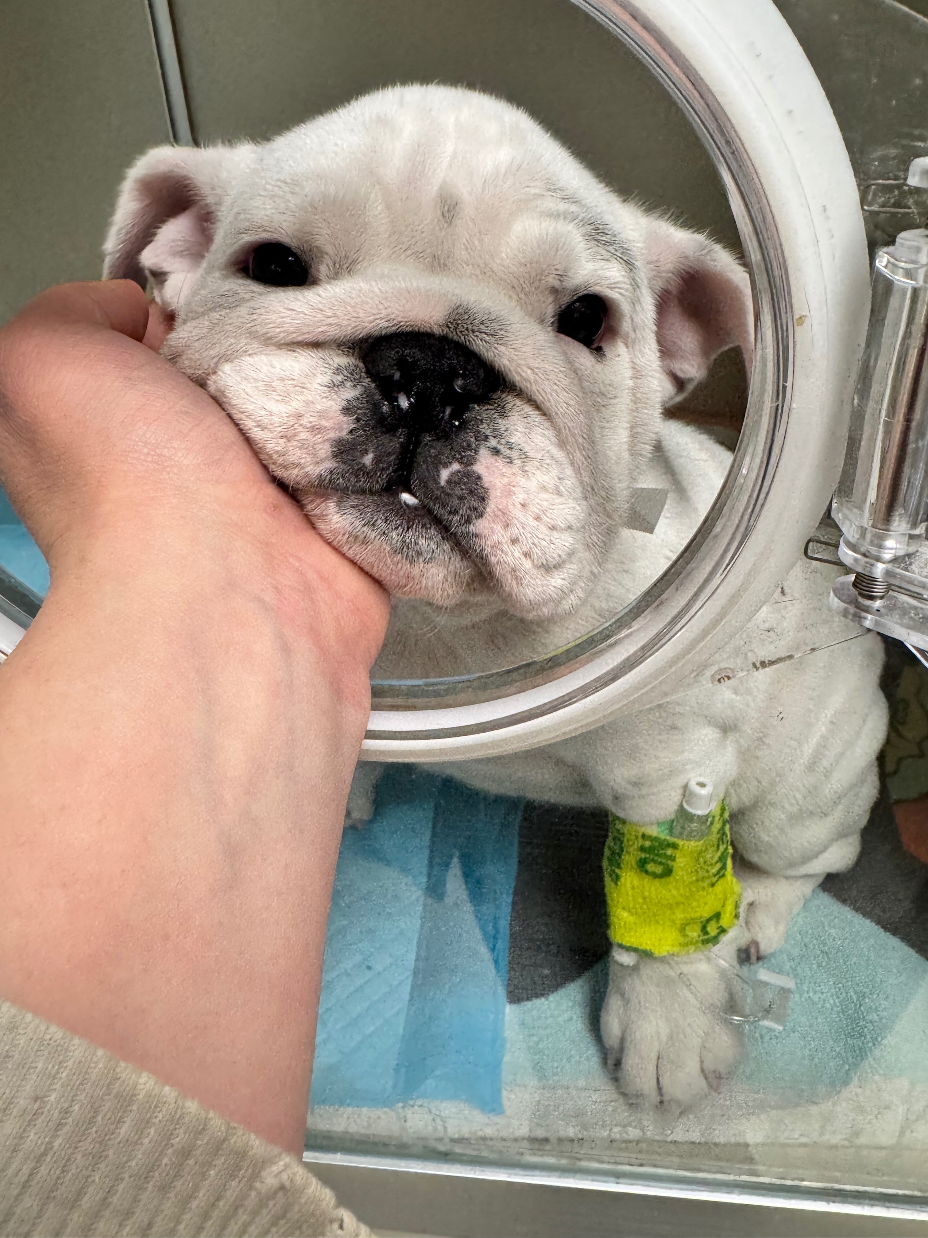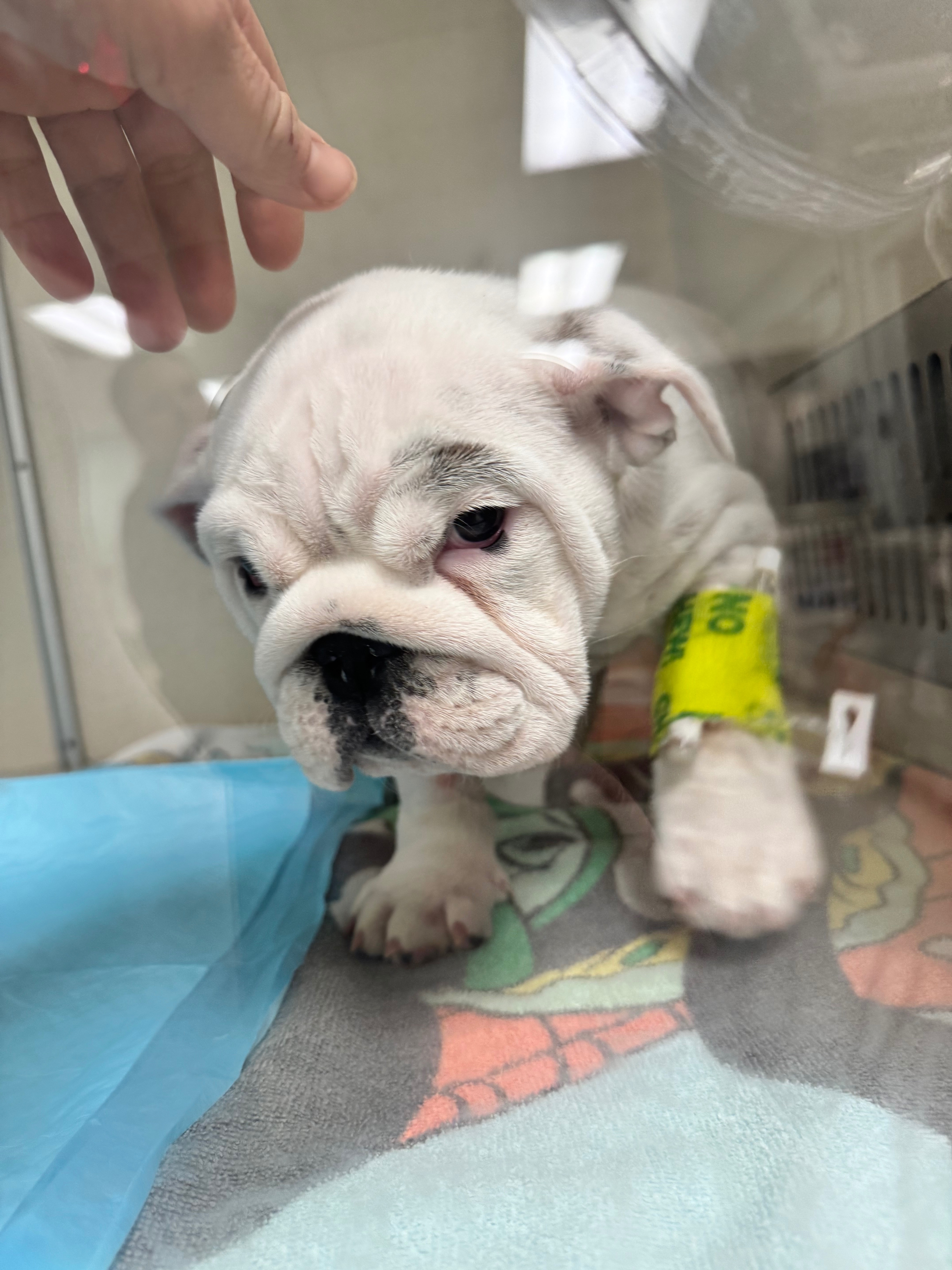 Hi, my name is Lauren and I am looking for some help to raise funds to pay for the critical veterinary care of Mabel, our 11-week-old English bulldog puppy, who is being treated for aspiration pneumonia for the second time in two weeks. We want to give her every chance possible while she is making progress, showing a will to keep going, and remains comfortable.