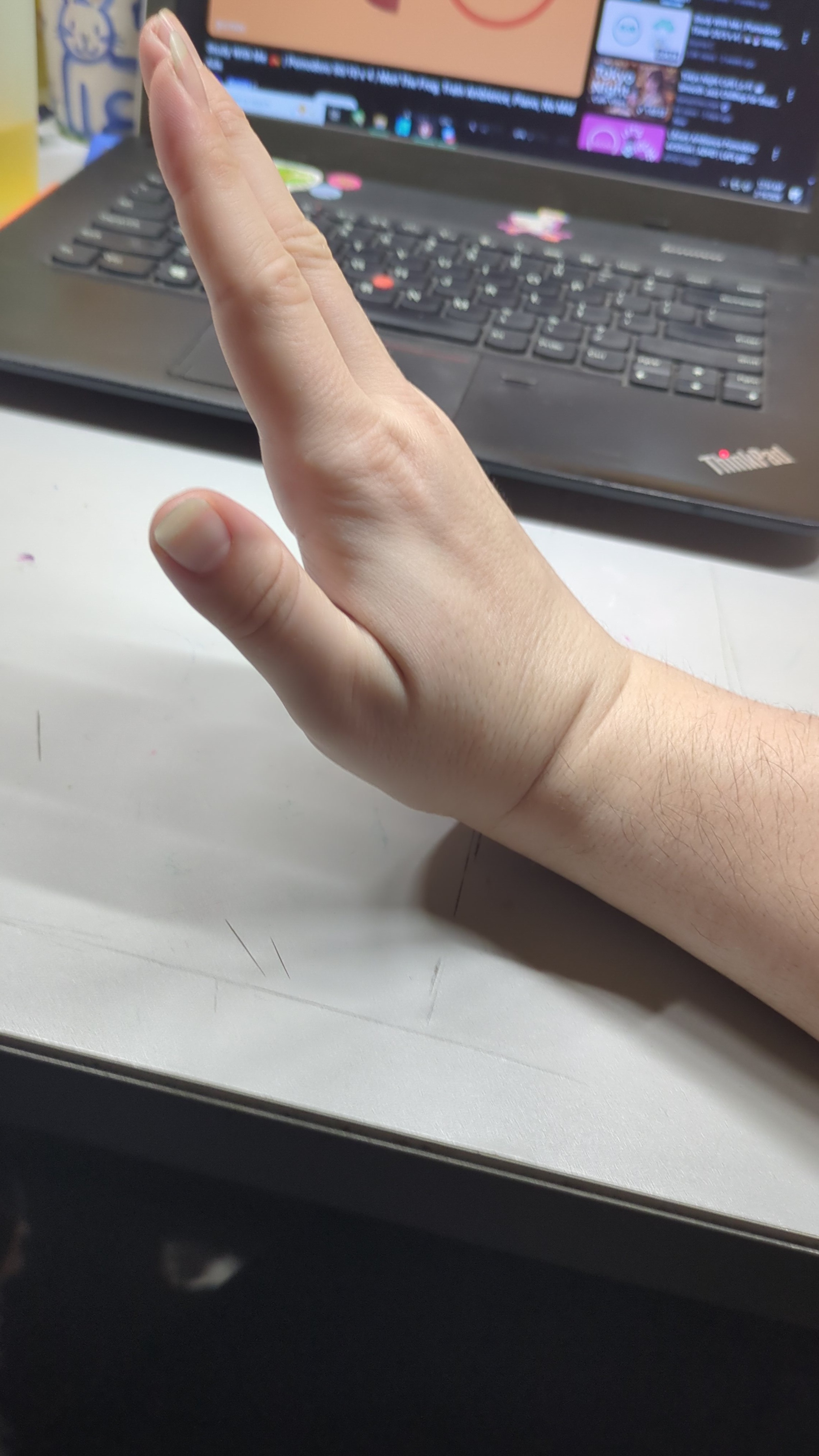 Sales for artists all around have been down and that has been making it even harder to catch up. I haven't even been able to do much art for about a year due to the pain from my carpal tunnel halting almost all commission/merch design progress. Due to all of this I got a day job, but it still hasn't been enough. I finally got carpal tunnel surgery about 3 and a half months ago, but developed pillar pain in my dominant hand. This is a common side effect that tends to go away 3-6 months after CRT surgery, but sometimes lasts up to a year. Currently, gently bending my wrist at about a 45 degree angle is a 3-5 on the pain scale for me. In my other hand I can get it to a 90 degree angle and I just feel a stretch.