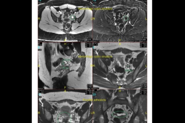 (My MRI Results, adhesions and cystic structures shown)