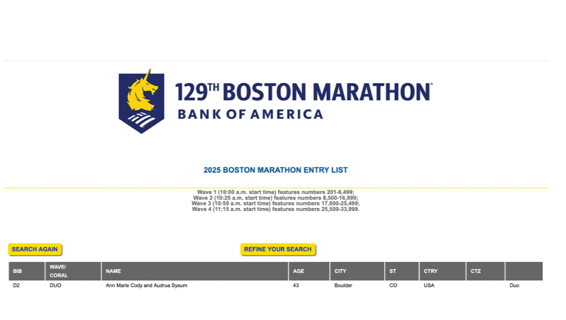 As many of you know, Audrua Sysum and I, Ann Marie Cody, are headed to the east coast soon for the 129th running of the Boston Marathon! Getting into this race has been a long-time dream for Audrua, who has cerebral palsy, and relies on others to push her wheelchair. After qualifying as a duo team in last year's Modesto Marathon, we were thrilled to be accepted into Boston!