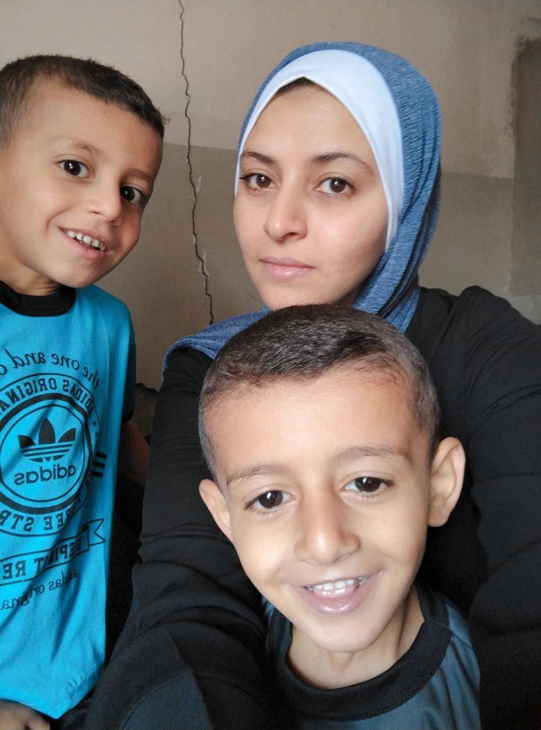 We are a family of five — my husband, myself, and our three boys — who used to live a quiet, happy life in the Shujaiya neighborhood in the north of Gaza. My husband owned a small shop under our house, and together, we worked to give our children a peaceful and joyful childhood. We had a beautiful home, full of love and laughter.
