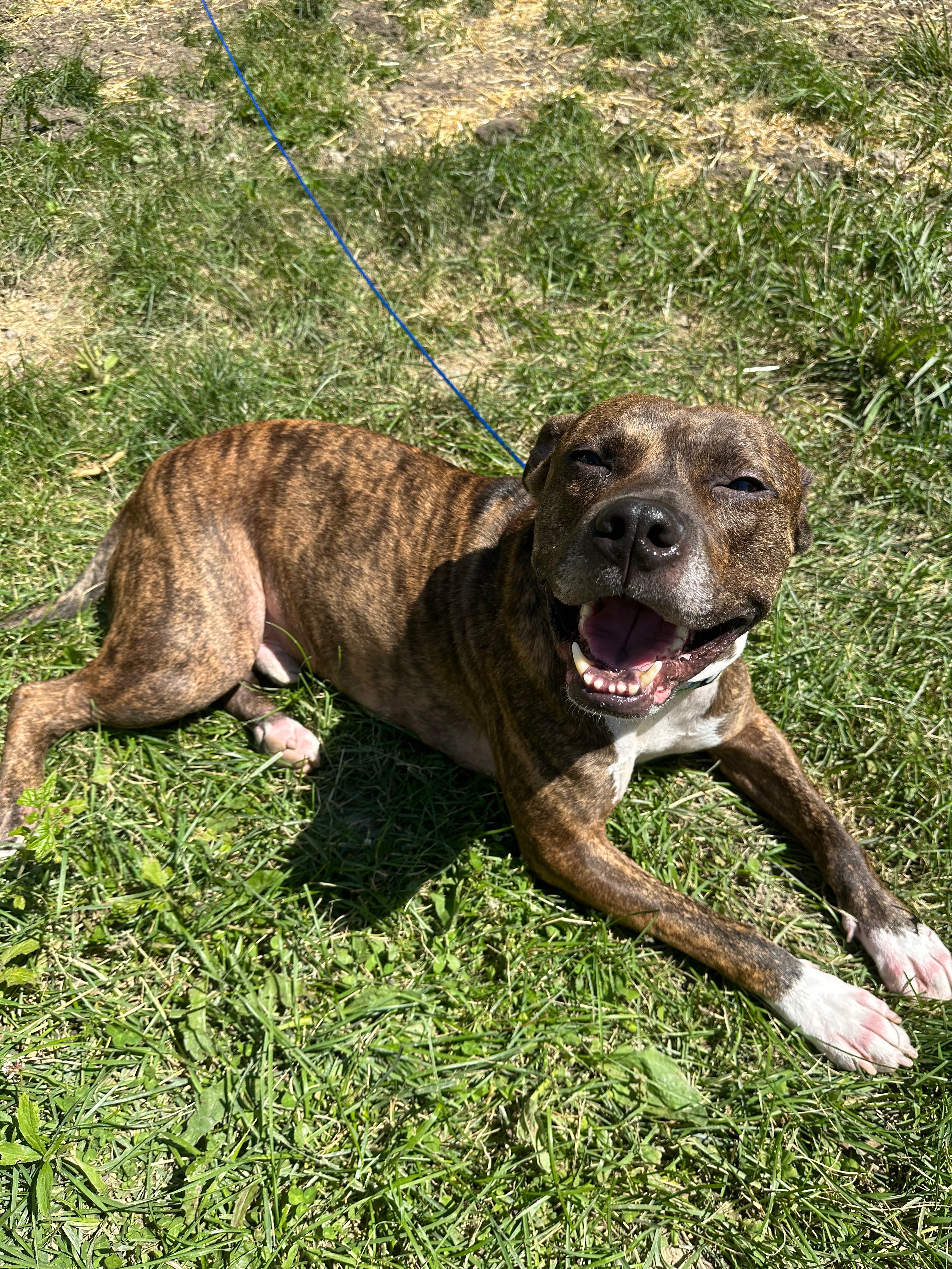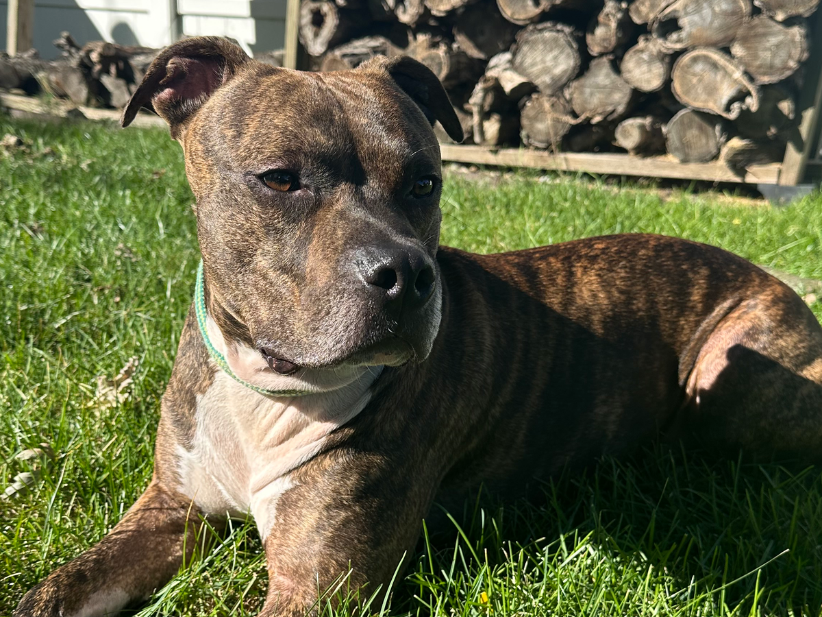 Hello! My name is Brenna and my 5-year-old rescue pit mix is Mando (Mandalorian)!