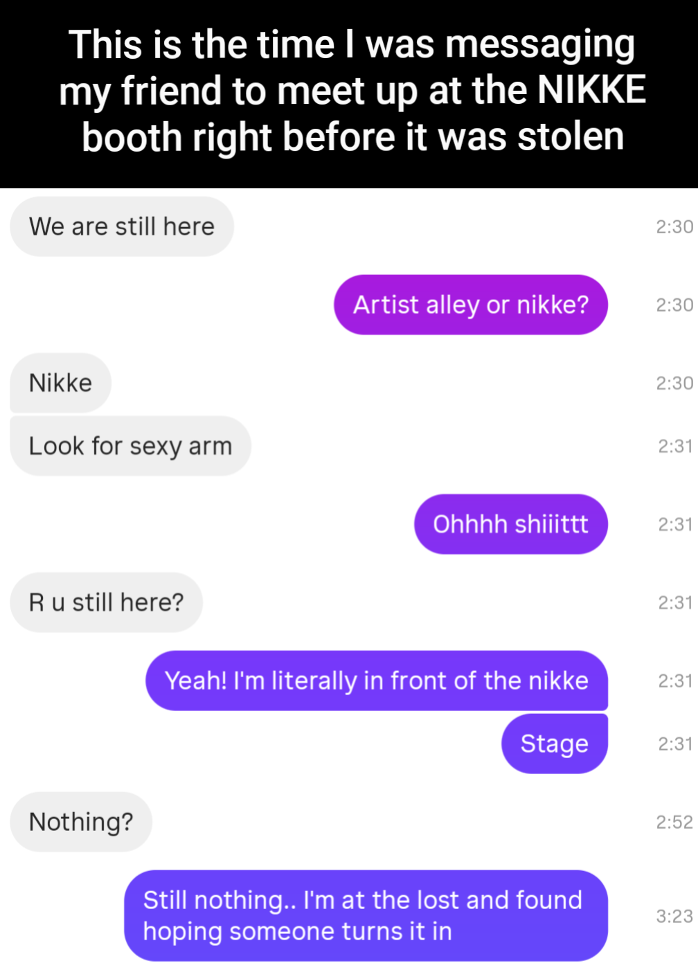 My friends and I confirmed we were in the same area around the NIKKE booth. With how crowded Anime Expo was, someone can literally stand next to you and you wouldn't know it's them, so I searched around briefly.