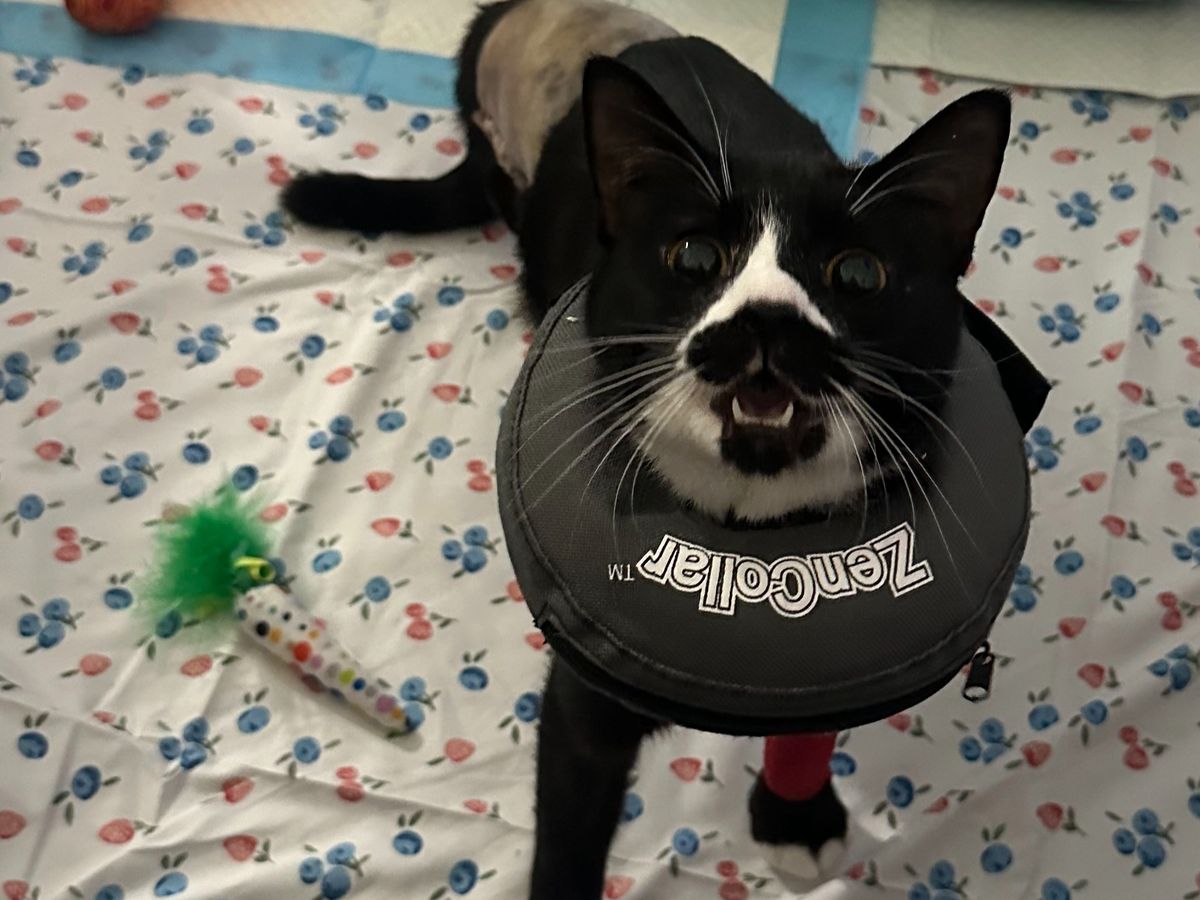 My dear friend Maria recently rescued a kitten that was abandoned at a grooming shop. The kitten was in terrible shape, requiring multiple vet visits and surgeries. Sadly, the poor kitten had to have one of its hind legs amputated and has been battling infections ever since.
