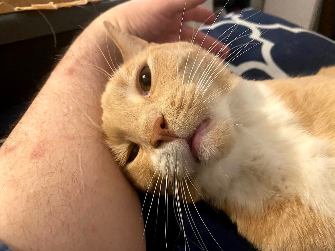 This is Mario. He's sixteen and starting to show his age. Lately, he's been sick, but I don't have the funds for even a check-up right now. He's lost a lot of weight over the past two years. Now he has issues keeping food down. I fear his time is drawing near.