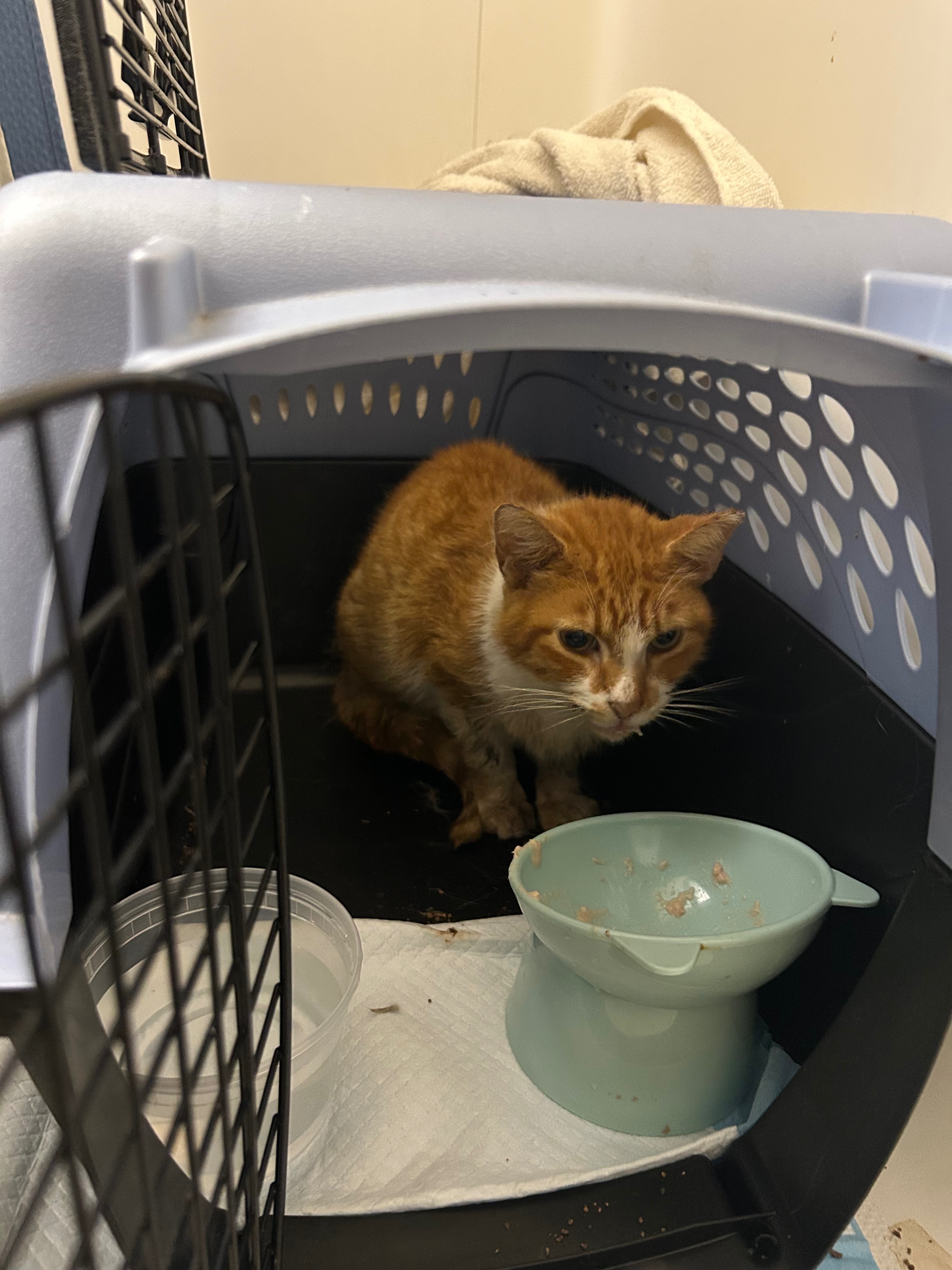 Update 8/11/2025: Marshall saw the vet today and we learned more about him and his situation. He is estimated to be between 6-8 years old. He currently has an ear infection that is being treated with antibiotics, and a possible ruptured ear drum. He also has swollen lymph nodes. He will need a dental that may cost upwards $1,000 due to rotting teeth and necessary extractions but he needs his infection to be cleared. He is also FIV+. Marshall also had a lot of tar on his fur so he's being cleaned properly. More updates but his most recent bill is now posted. Please consider donating! We will have dental paperwork shared as soon as we can.
