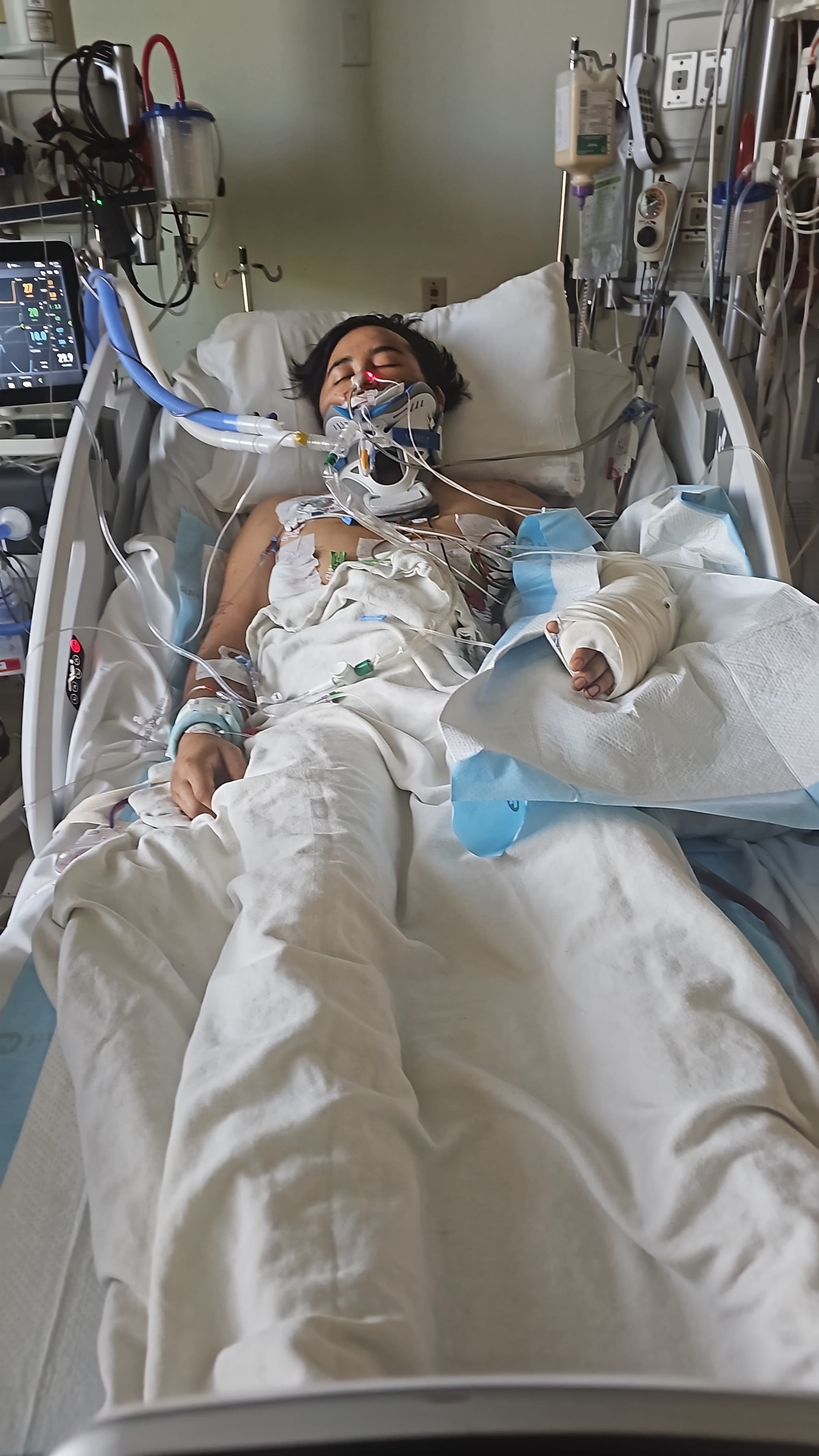 After being found, I was airlifted by helicopter to the hospital. My injuries were so severe that I was gone for 10 minutes—they had to revive me three times and I received 40 bags of blood transfusion. It truly feels like a miracle that I survived, and I am so thankful for this second chance to be here for my children.