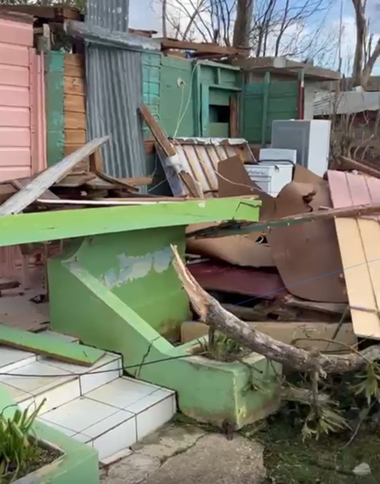 During the storm, a large mango tree fell onto the front and midsection of her house, crushing and flattening most of the structure. What was once a sturdy four-bedroom family home is now unlivable with the roof gone, walls destroyed, and all personal belongings, clothing, bedding, and appliances lost.