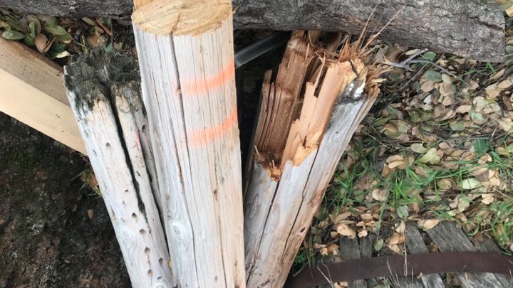 lines which broke my power pole in half. We have not had power since. We are