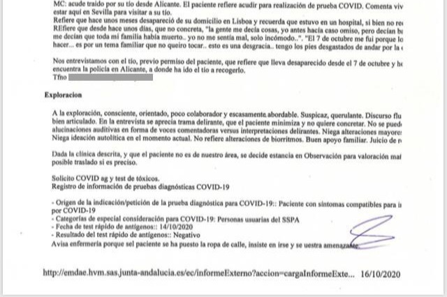 Per fortuna quando apparve Mauro, mio ​​zio andò a cercarlo e lo portò con sé a Siviglia. In questo momento Mauro è ricoverato, mentre si fanno le valutazioni necessarie per trovare la diagnosi e per evitare che si perda o esca nuovamente senza permesso con tutti i pericoli e le conseguenze che questo può portare.