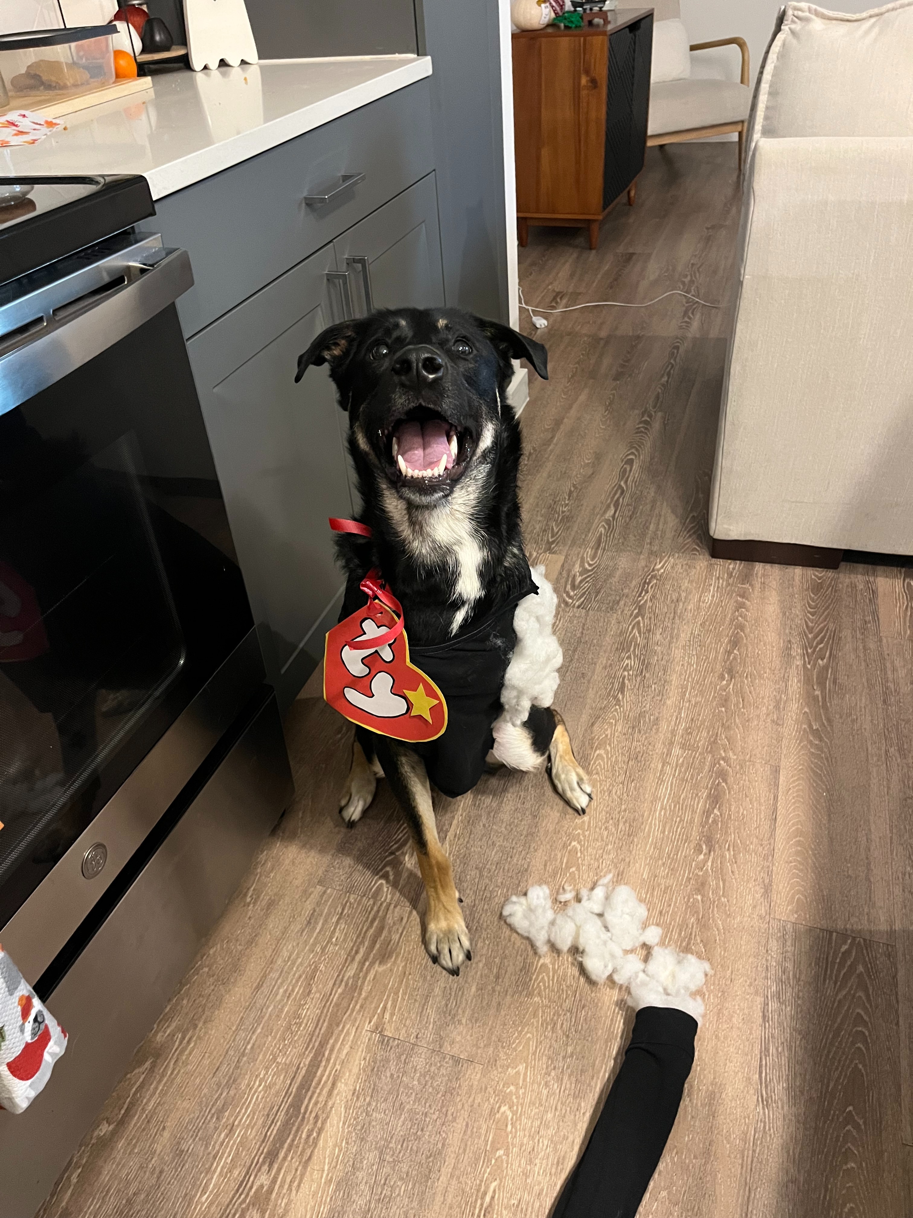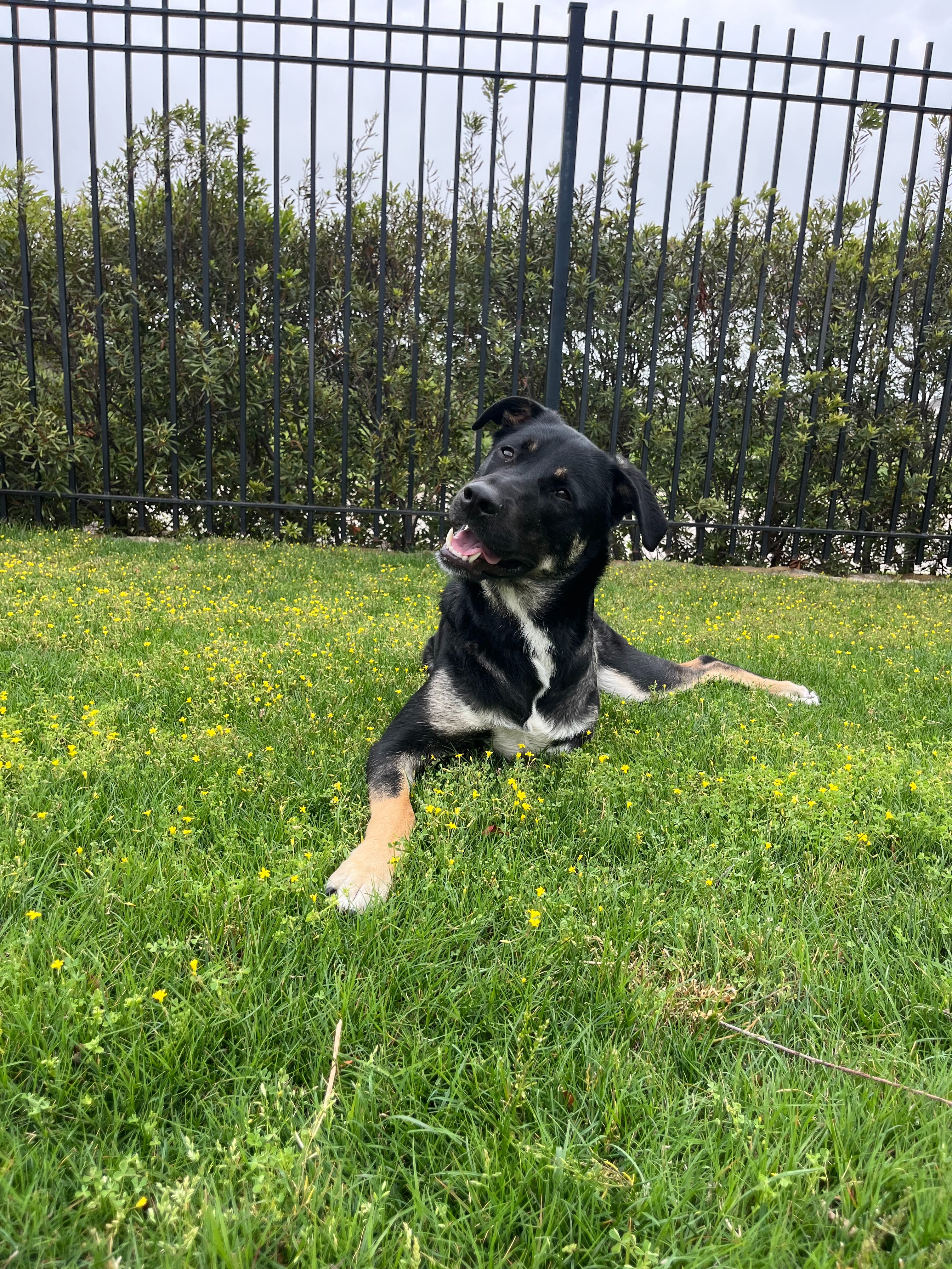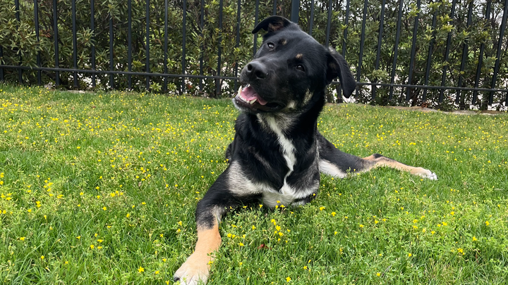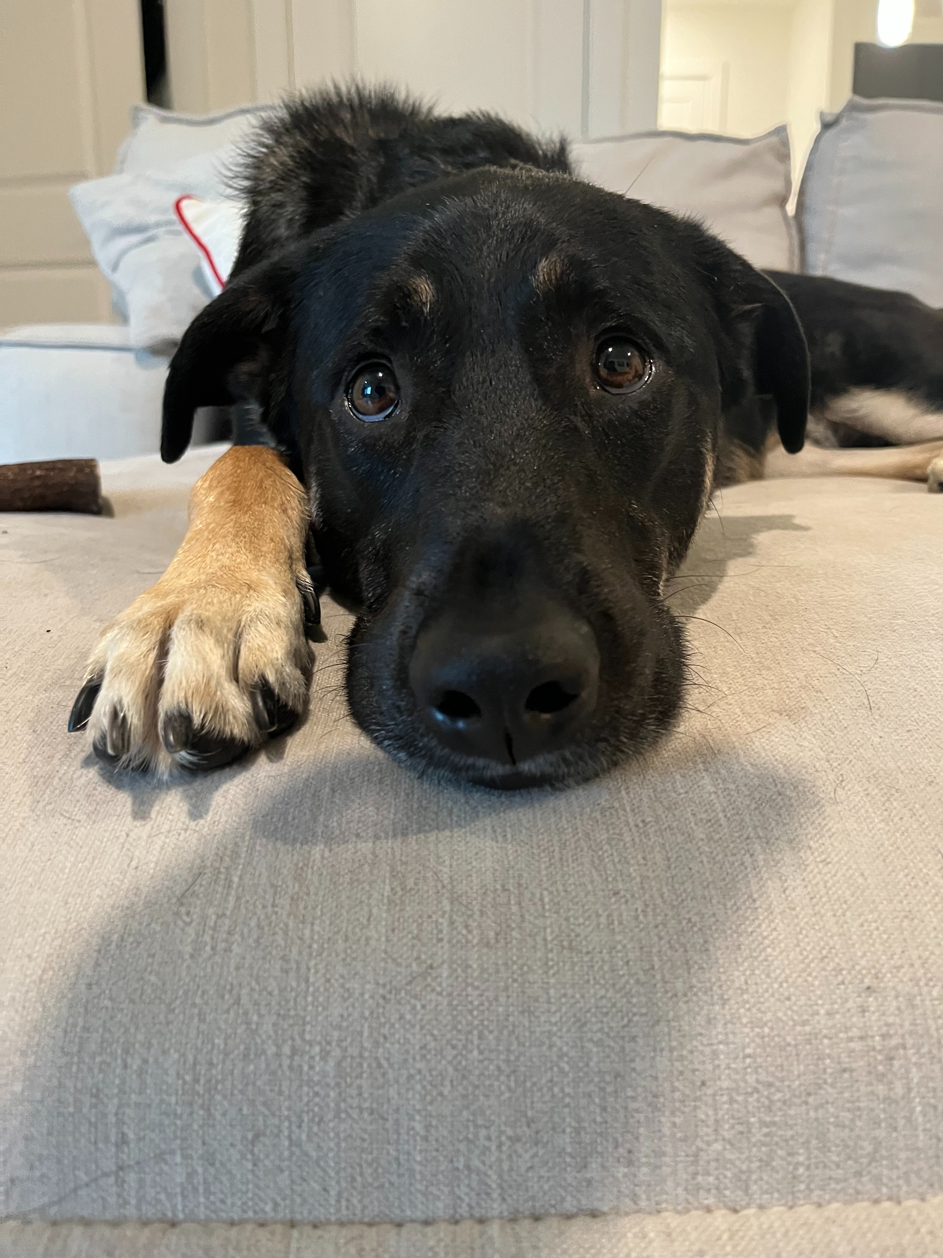A few weeks after his first birthday, Maverick was diagnosed with a soft tissue sarcoma. We noticed a bump on his front leg in January of 2025 and a month later, Maverick's vet was able to diagnose and remove most of the tumor. The aggressive nature and position of the cancer led us to make the decision to amputate his leg.