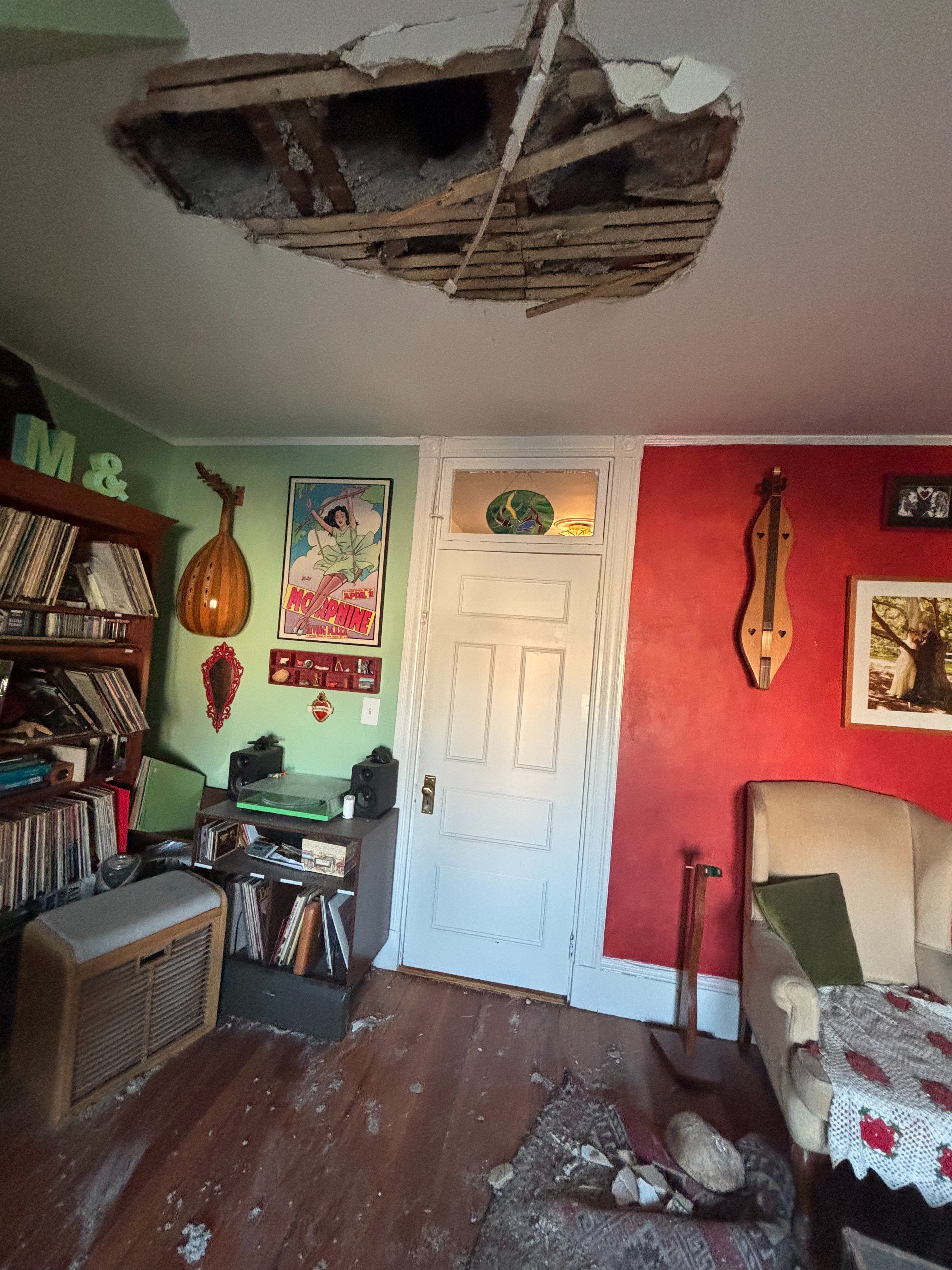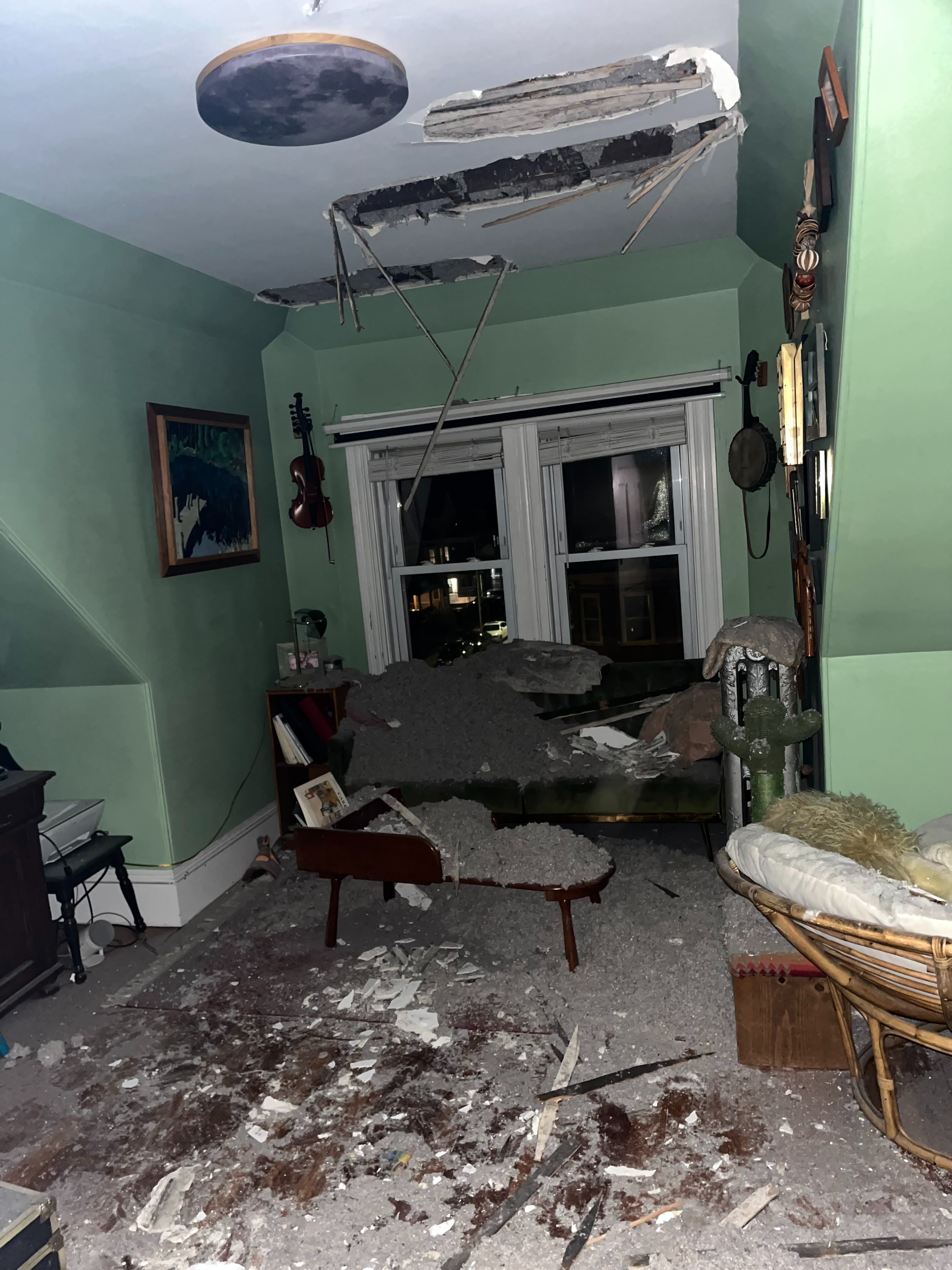 On November 15th, 2025, Max and Zoe's rental apartment in Dorchester suffered an electrical fire caused by old wiring in a lower floor's unit. Because the fire was inside the walls, it traveled up to their unit's ceiling through the empty wall cavities and crawl spaces. Max and Zoe were not at home at the time, so the fire department had to break the door down to open up the ceiling, thus exposing the smoke and ash damage in the attic. This all caused the total and devastating loss of their home, which they had lived in for the last three wonderful years. This had been their first solo home as a newlywed couple. It was a milestone home for them in many ways: this unit was the backdrop to many happy and core matrimonial and musical memories. It is also where they adopted their two street cats, Zephyr and Nimbus, from a local rescue.