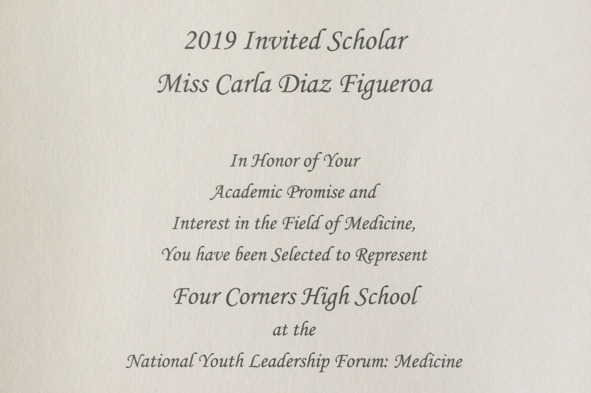 In January of this year I received a great news, one of my dreams. I received an invitation to represent my school, Four Corners High School in Florida, at the National Youth Leadership Forum (NYLF) of Medicine, which is administered by Envision Program and sponsored by George Mason University, ranked as one of the "Top Schools to Watch" by U.S. News & World Report and as one of the "Top 100 Best Values" in higher education by Kiplinger's Personal Finance and Forbes. Also, recently is ranked among the highest research institutions in the country by the Carnegie Classification of Institutions of Higher Education, joining an elite group of institutions, including Harvard University, Stanford University and the University of California at Berkeley. This Forum will be held this summer 2019 in different cities of the United States. I have the opportunity to select the university and the session date that I want to attend. Until now, I have selected to attend the University of Maryland in Washington, DC from July 25 - August 2, 2019.