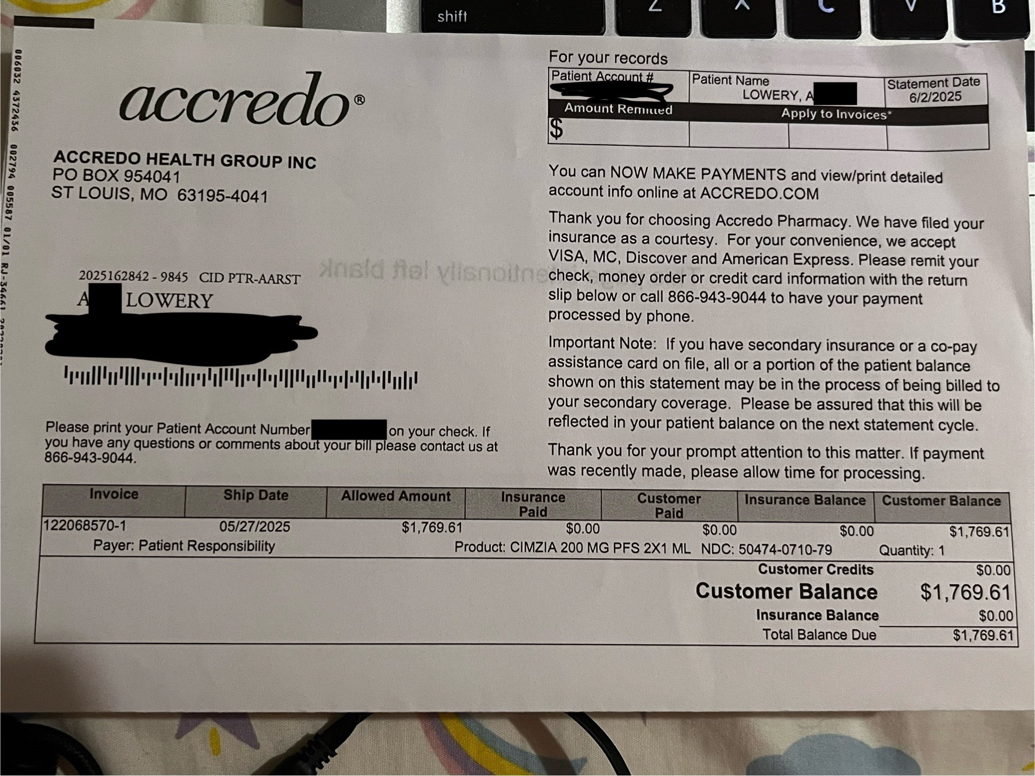 I simply need to pay this charge and I'll be able to refill my medication.