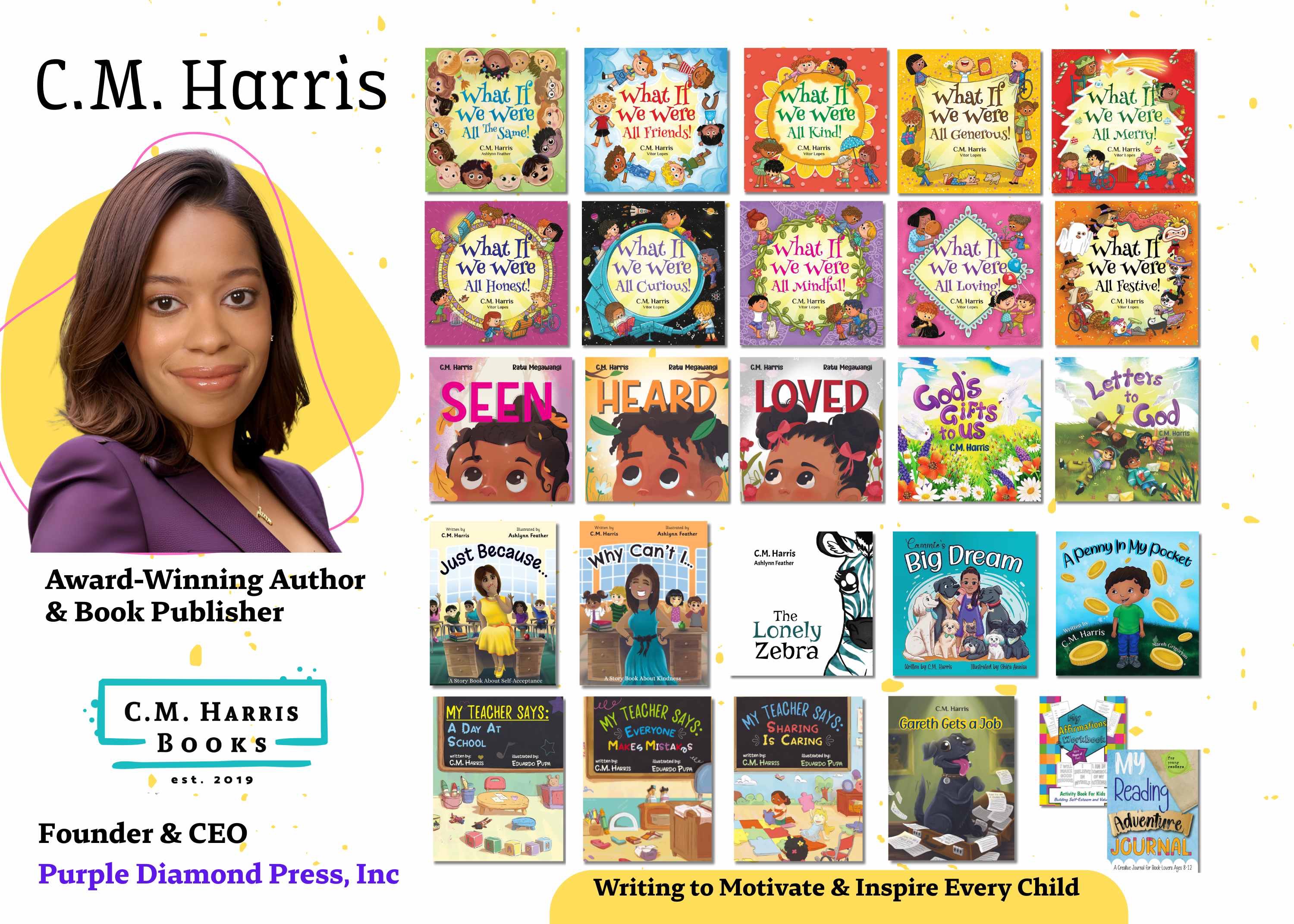 Living with a neuromuscular disability, I’ve faced adversity, countless challenges and barriers—but I refused to let that stop me from pursuing my purpose of becoming an bestselling author. I built my own publishing company, Purple Diamond Press Inc from the ground up to give a voice to stories that matter and to ensure that every child can see themselves represented in books.