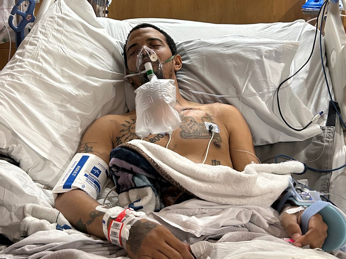 THE HIGHEST OF THE HIGH RANKS AND TOP DOG DOCTORS WERE ALL AT MY ROOM. THEY IMMEDIATELY MADE ME COMFORTABLE AND BEGAN A FEW BED SIDE PROCEDURES WHERE I UNDERWENT LOCAL ANESTHESIA ONLY… ONE WAS AN ARTERIAL LINE PLACED IN MY LEFT WRIST THE OTHER WAS A CHEST TUBE THAT ACTUALLY WAS NOT A SUCCESS THE FIRST ATTEMPT (THIS WAS EXTREMELY PAINFUL AND I WAS AWAKE AND WATCHING THE ENTIRE PROCEDURE. Reason for fail first attempt is cause my rib muscle is extremely thick and strong so the metal wire kept be ding and would not punch through. (OUCH)