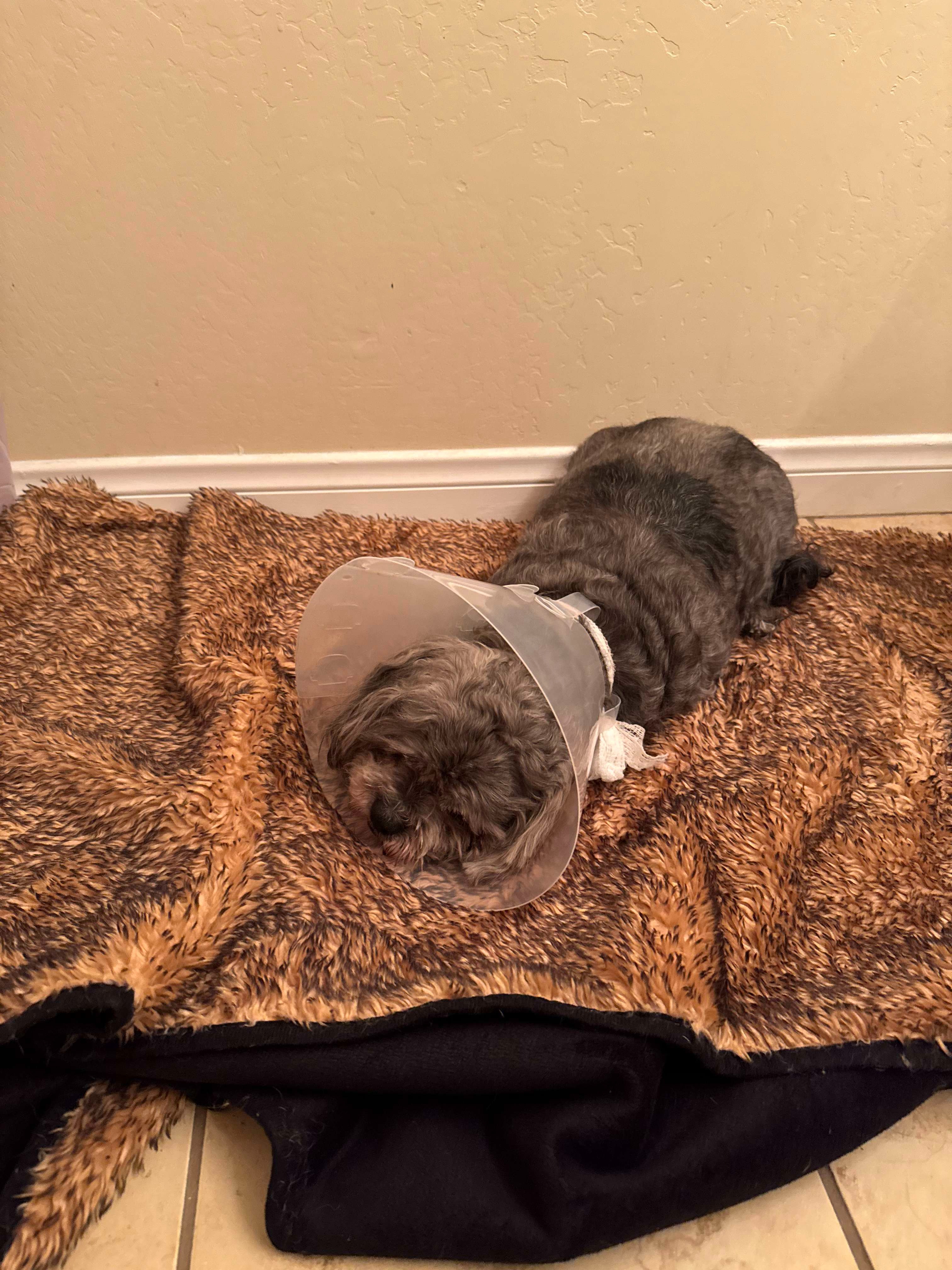 He's had an operation to remove them, which will cost around $5000. My family held a debate on whether or not he should be put down over this price, as none of us really had the money for this. Despite us both going further into debt, my father (who does not live at the family house and not previously understood Moreo's circumstances there) and I stood strongly on being responsible for the bill with money we do not have. We believed Moreo deserved a chance, and that he still has years of good life he deserves to experience.