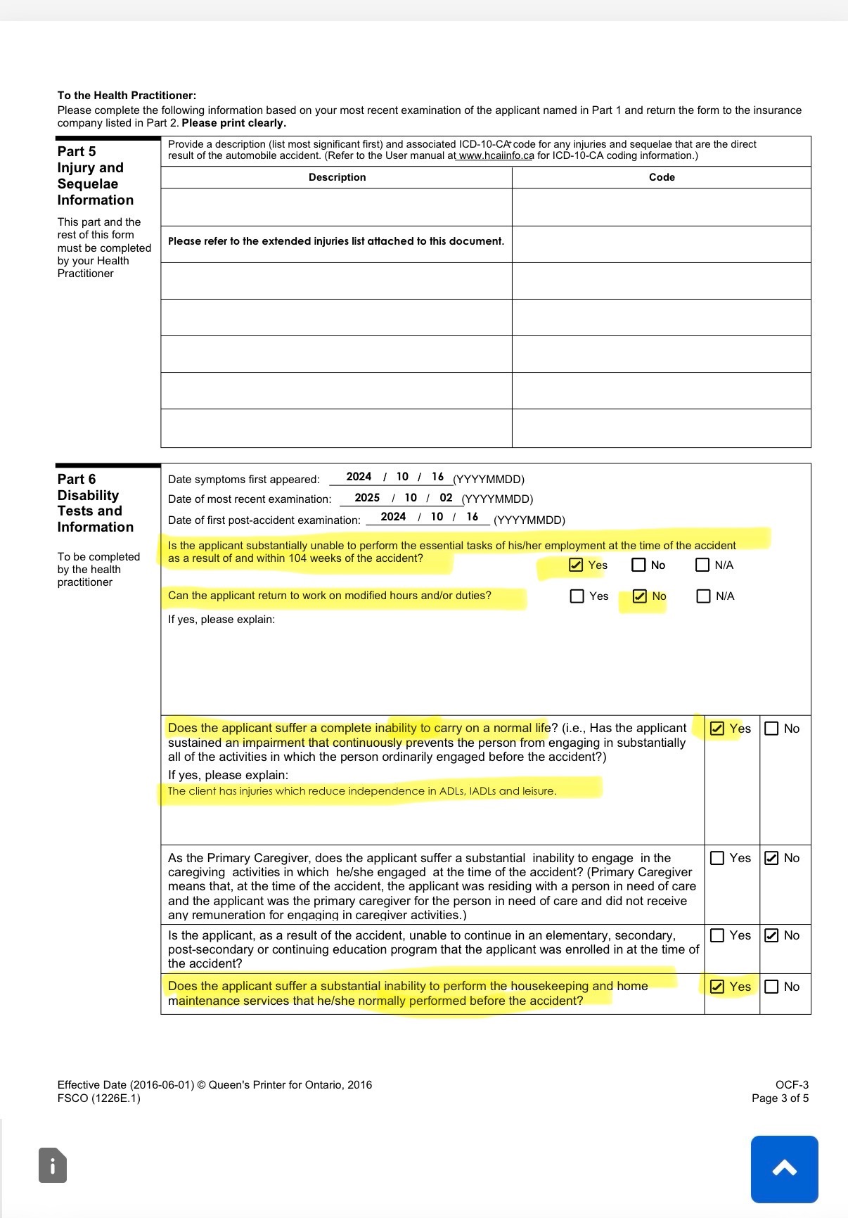 • The car accidents happened in February 2023 and October 2024