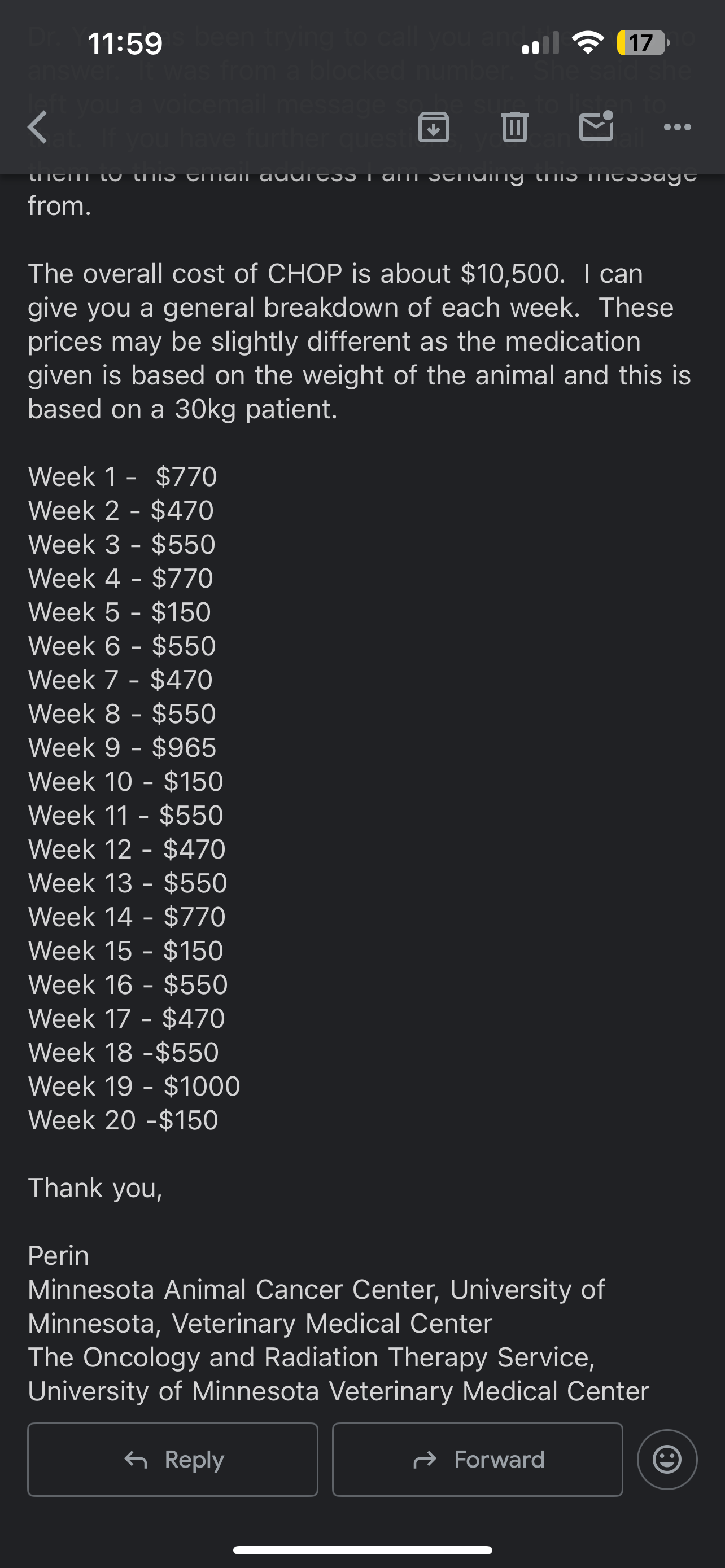 They recommend 1- Chop chemo ($10k)