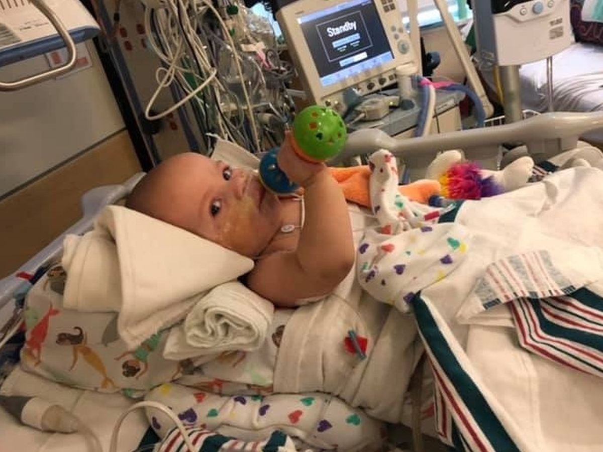 RSV, bronchiolitis, H. Flu, pneumonia, respiratory failure(literally on NYE at 11:30pm), was placed on a ventilator (since 1/1), sepsis (klebsiella), septic shock, clot in a branch of her liver, then they found air bubbles in her bowel and she had necrosis of her small bowel where her small intestines where destroyed...dead AKA abdominal compartment syndrome. If she didn’t have the first surgery at 10pm last Saturday... she would have been dead by the morning. No lie, her life was saved numerous times. Since last Saturday, she has had 4.... FOUR surgeries. The first saved her life but removed a lot of bowel leaving her with only 90 cm. The surgeon left some questionable bowel in hopes that it would heal by her next surgery. The second surgery they had to remove more intestines because the bowel died bringing her down to 32 cms And left her bowels in 7 sections. Her third surgery was 6-7 hours and was cleaning and attaching most of her bowels but leaving the middle detached. Her fourth surgery attached the whole bowel so she has continuity. She now only has 30 cm of small intestines left. 30 CM! It’s called Short bowel syndrome or Short Gut. We are still in the hospital and it will probably be awhile. She needs occupational therapy, speech therapy, she has to learn to eat, she needs a special line for special nutrition (TPN), she has a gastrostomy (G tube -feeds go directly to her stomach), she has to meet still with GI doctors, infectious disease doctors, autoimmune disease doctor(they are making sure she doesn’t have an underlying problem) and respiratory therapist. We have a long road ahead but Sadie’s strength has kept us strong. She has been so strong.