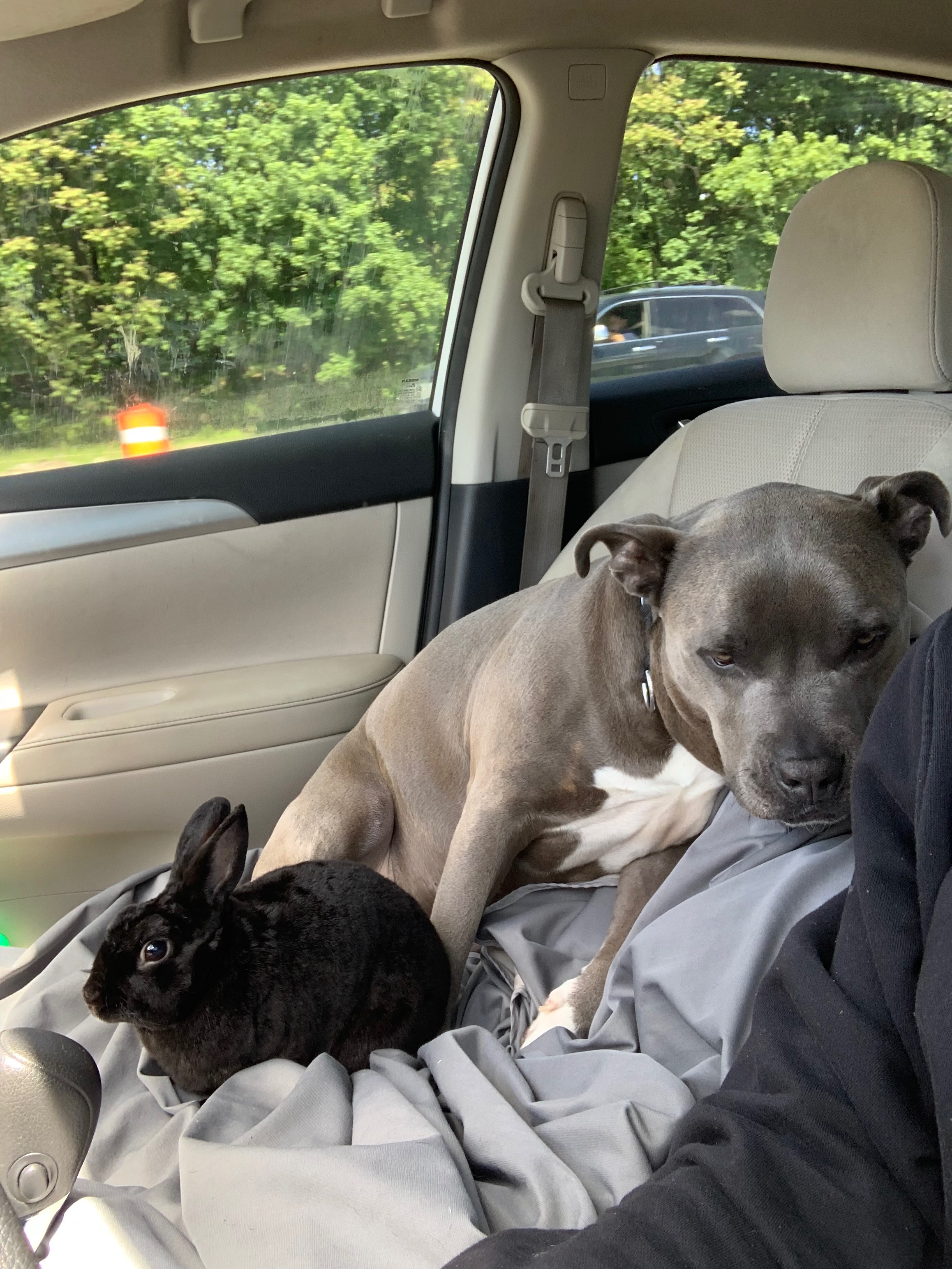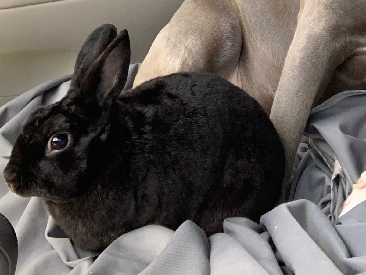 A couple days ago, he suddenly stopped eating and drinking. I took him to the emergency vet and found out he has a GI obstruction—something that’s extremely dangerous in rabbits. He hasn’t pooped or peed, and his stomach is full of gas. Right now, he’s in the hospital on IV fluids and pain meds, and they’re monitoring him around the clock, hoping he can pass the blockage on his own.