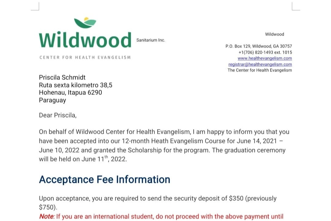 My dream is to continue training as a physician in the field of Lifestyle Medicine and as a medical missionary too. For that reason, I applied to take the course of Lifestyle Medicine at Wildwood Health Institute in Georgia, United States. The course offers me excellent training with technical, practical and theoretical knowledge about natural medicine and lifestyle medicine.