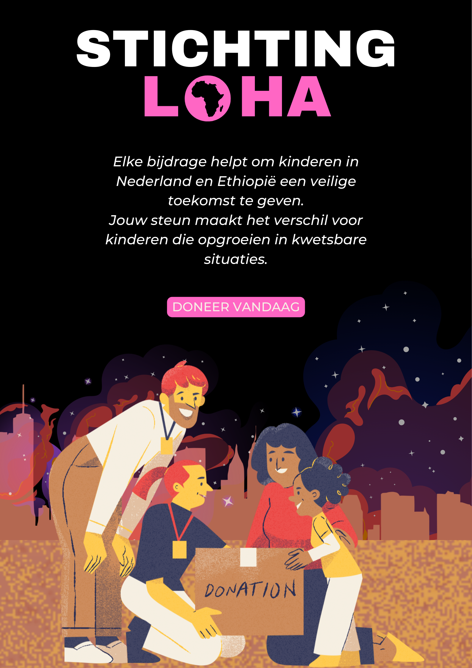 Jouw donatie helpt ons om deze stichting van de grond te krijgen en direct verschil te maken. Alles wat nu wordt ingezameld, wordt na oprichting volledig ingebracht in Stichting Loha.
