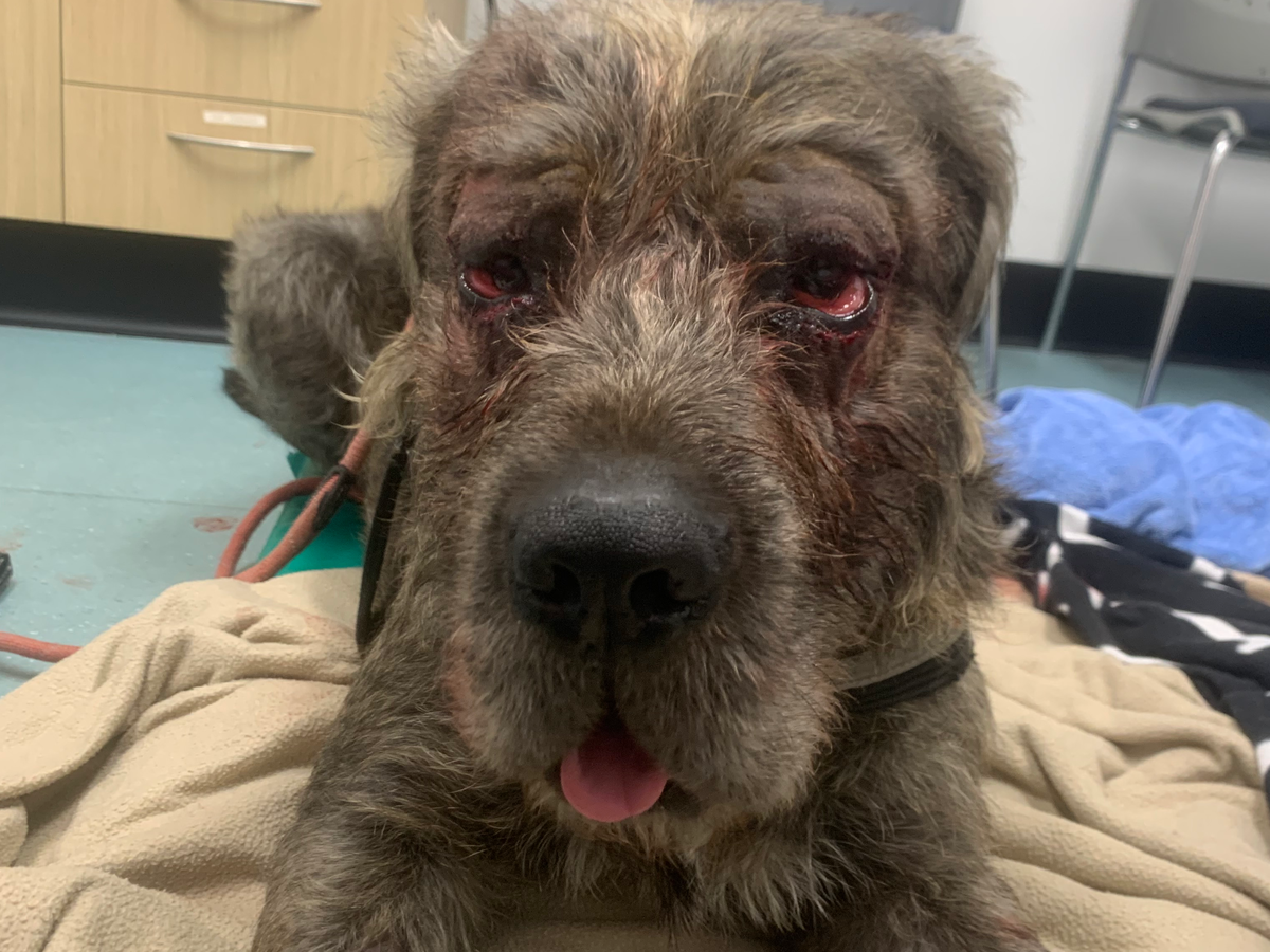 Meeko was born with a painful condition called entropion, where his eyelids roll inward and his eyelashes rub against his eyes. This causes constant irritation, pain, and, if left untreated, can lead to blindness. This condition does not present itself until they’re in older, and unfortunately with Meeko’s mix of breeds it is a common issue.