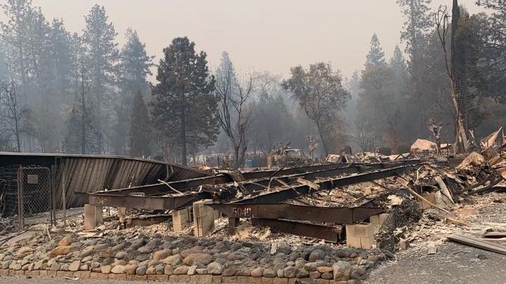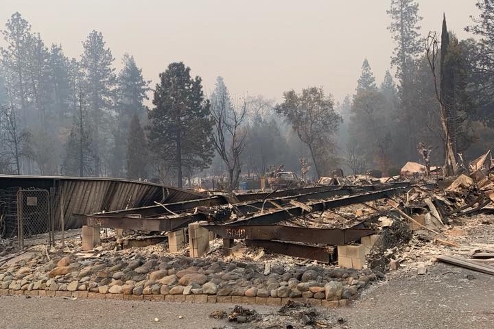 Mere minutes after getting the evacuation order, the sky became filled with so much smoke that it appeared to be nighttime even though it was just after 8:30am, and then with little warning the Church next to Mel's house began to burn, and so with the very few possessions that they'd had time to grab Mel got her Mom, sister and two fur babies loaded into her car and all thankfully made it out of Paradise safely.