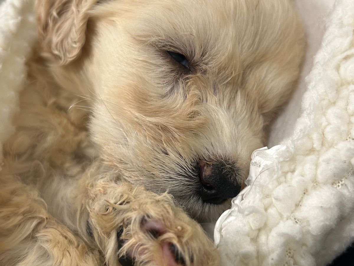Hara immediately noticed that puppy GRR 24-056 Melody was very sick: she was quite small, lethargic and dehydrated. Hara rushed her to an emergency hospital where they determined Melody has coccidia and as a result, her glucose level was 44 and it should have been over 100.