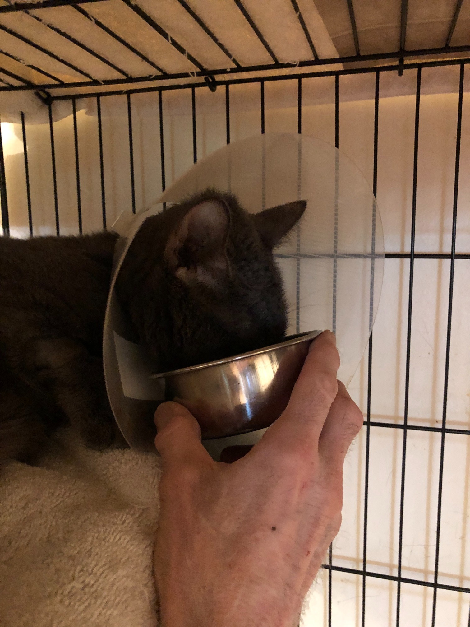 TipTop went to the vet for a dental. At home a few days later, an abscess developed in his cheek. This meant another trip to the vet.