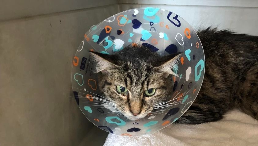 Griselda had to be rushed to the vet during tropical storm Ida. The surgery was a success. With the highway flooding, the trip home was dangerous.