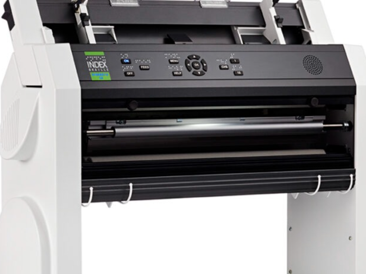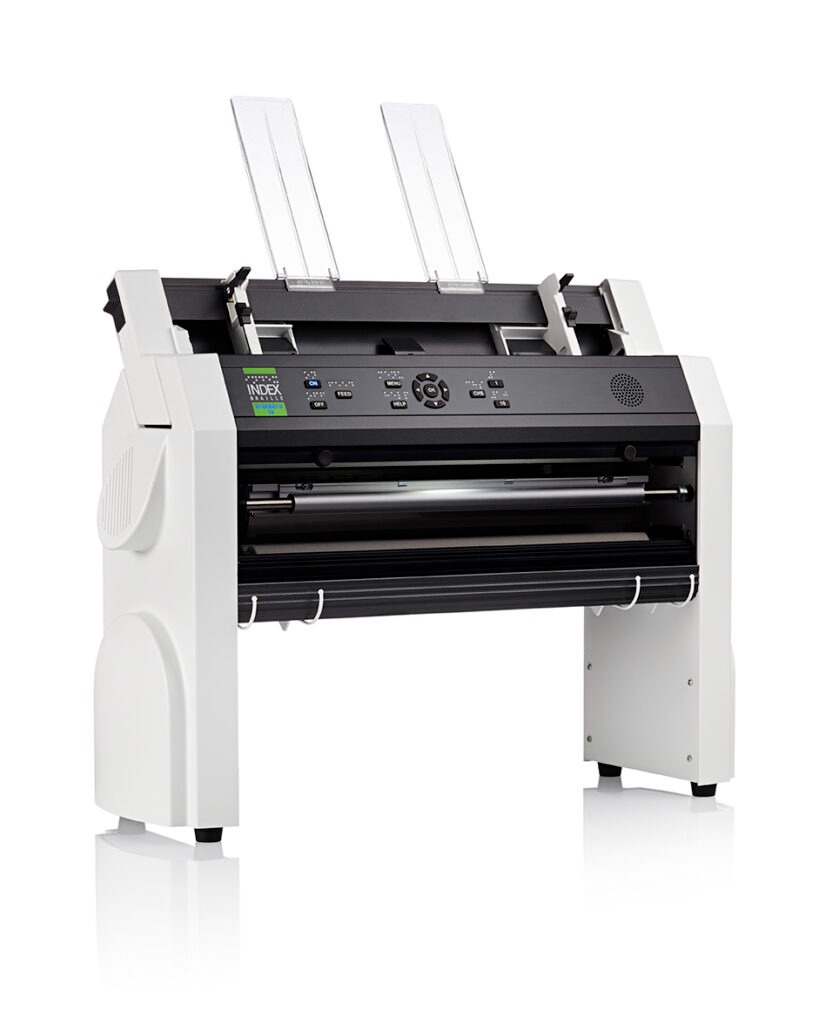 • Een brailledrukker (Index Everest-D V5) om zelf tekstbrailledocumenten te maken op losse vellen braillepapier (160 gr/1m)