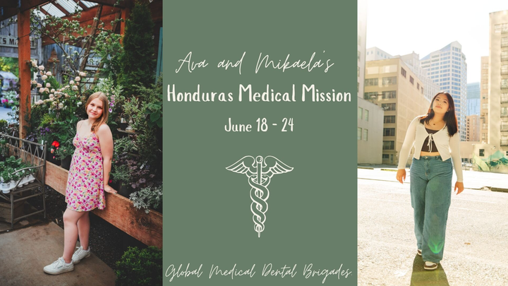 We’re Mikaela Chan and Ava Charlton, students at the University of Washington. We also happen to be roommates and are both majoring in pre-health sciences. This summer, June 18th, 2025 - June 24, 2025, we have been given the most incredible opportunity to travel to Honduras for a mission trip with an organization called Global Medical Dental Brigades (GMDB). GMDB is a worldwide, non-profit organization that helps rural communities in need by providing sustainable healthcare. We will be going to local communities in Honduras to provide access to healthcare. This would be an extremely gratifying opportunity and a chance to provide hands-on medical assistance. Giving back to those in need is a permanent goal of ours and with your help we can make this dream a reality. Your donations will go toward the program cost, flight assistance, vaccinations needed to enter the country, plus donations and supplies for the community. Any donation, small or large, will be greatly appreciated by us and those in need. Thank you so much for your time and consideration.