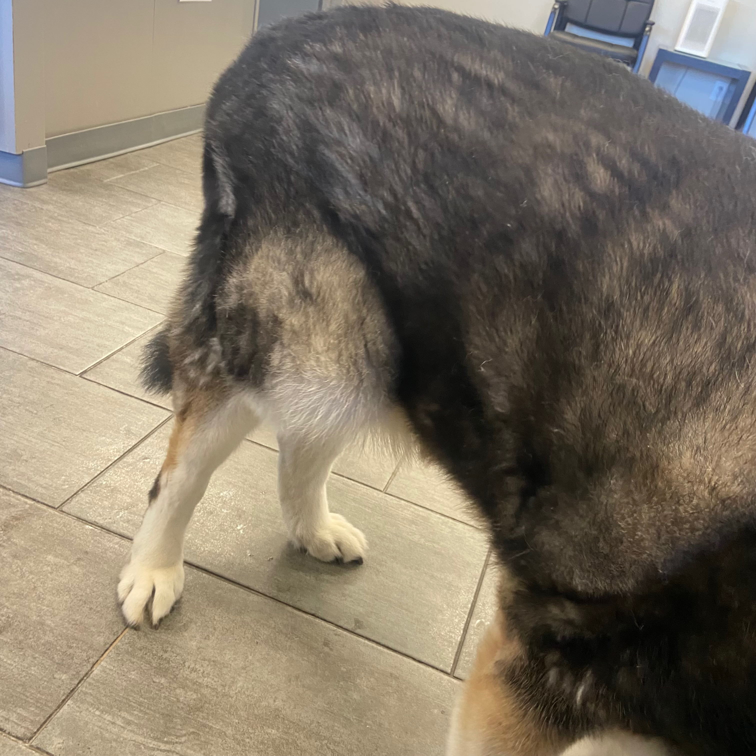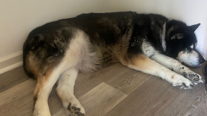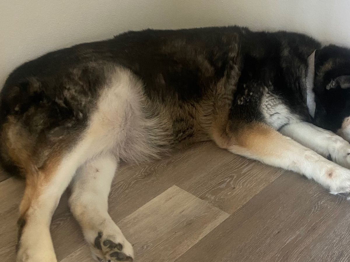 Our dog Miko is currently suffering from a massive swelling in his leg, about the size of a soccer ball. The vets believe it could be a severe abscess or possibly cancer, but we won’t know for sure without the tests and surgery he urgently needs. Right now he is in extreme pain and can no longer get up on his own to go to the bathroom. Watching him struggle like this has been absolutely heartbreaking for our family.