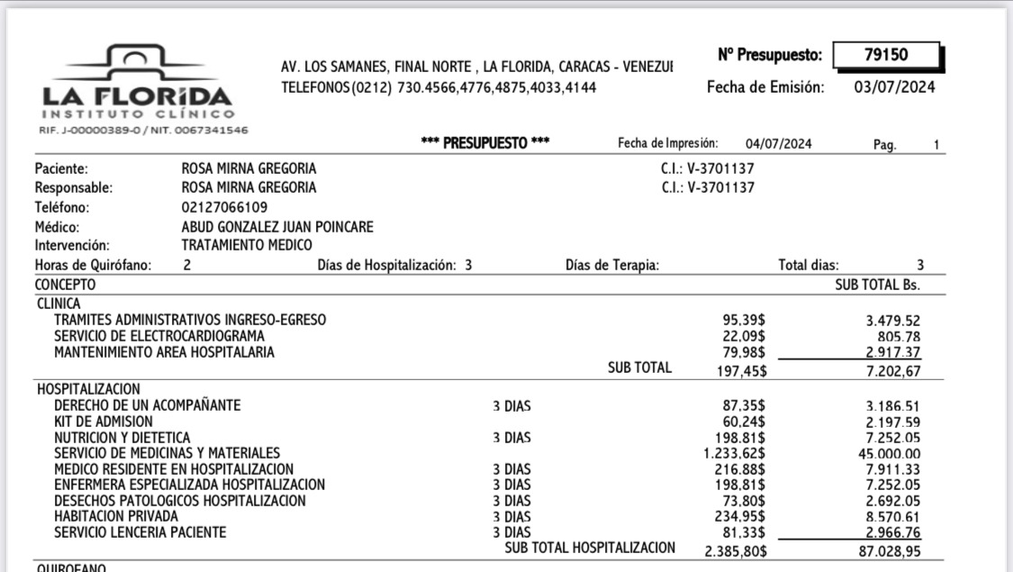 El seguro médico local de nuestra mamá se quedó sin fondos, y con el sistema de salud pública de Venezuela presentando una escasez generalizada de equipos y medicamentos, mi hermana Julia y yo estamos enfrentando la necesidad de cubrir todos los costos médicos asociados a su condición.