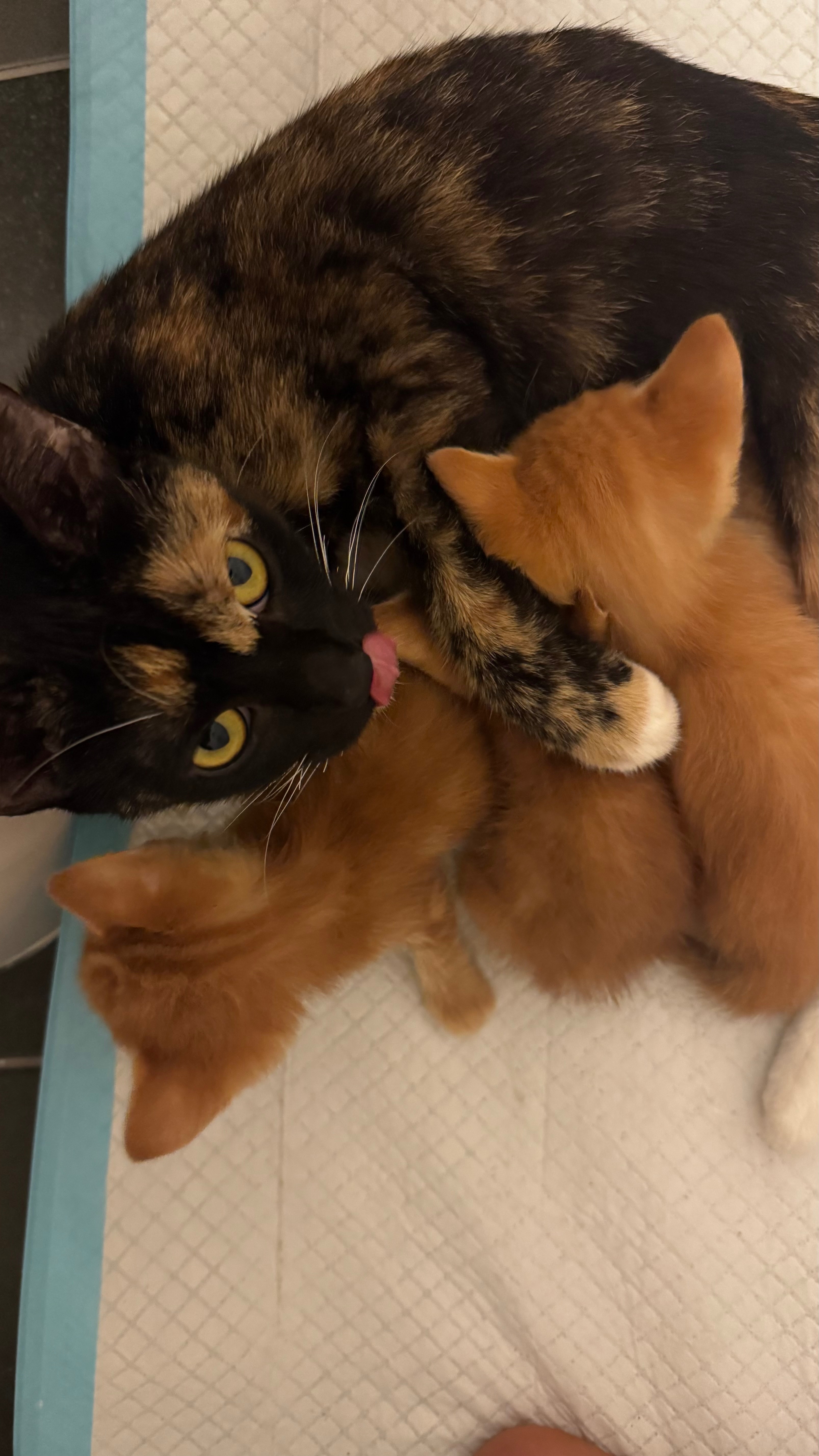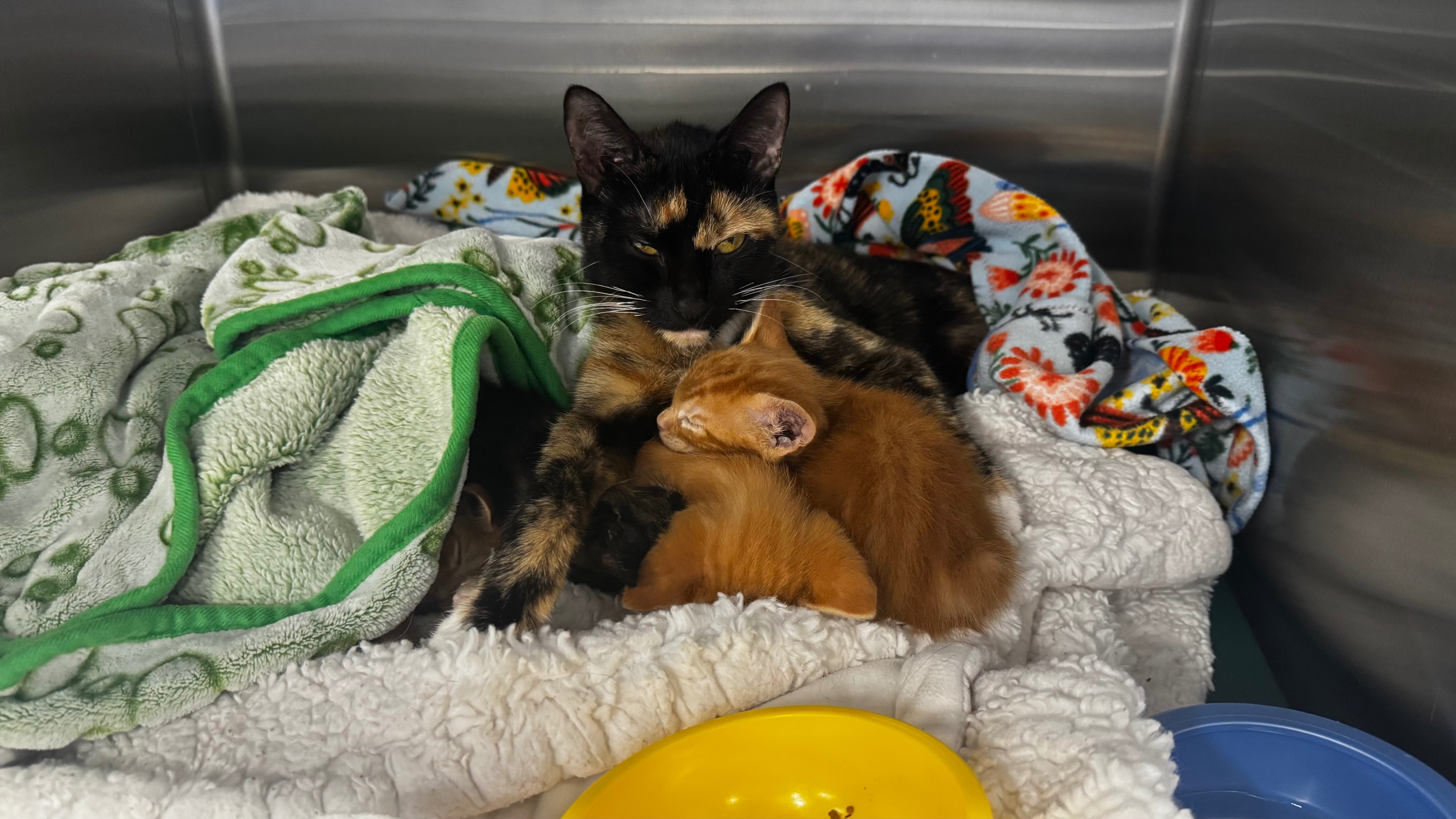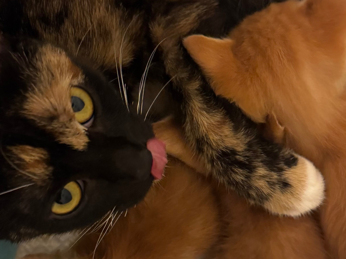 On July 20, 2025, my wife and I rescued a litter of five tiny kittens (2 had been lost before we could rescue them) and their mother, Miso, a beautiful tortie cat (less than a year old), from a neighbor on Next Door who found them in a bush at her apartment complex. It was noted that they had fleas and were suffering from the heat. We picked them up and realized the litter needed emergency care, so we took them to BluePearl Pet Hospital. Tragically, two kittens lost so much blood from the fleas that they didn’t make it. The remaining three kittens, who we named Jack, Carrot, and Romeo, and their mom were bathed and treated with flea medicine. The staff at BluePearl spent many tedious hours removing literally hundreds of fleas from all of them.