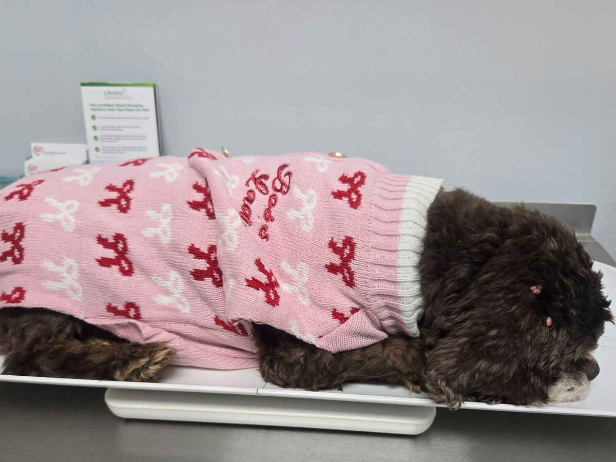 Missy, a 10-year-old therapy dog, needs emergency tests, transfusion, and surgery funds