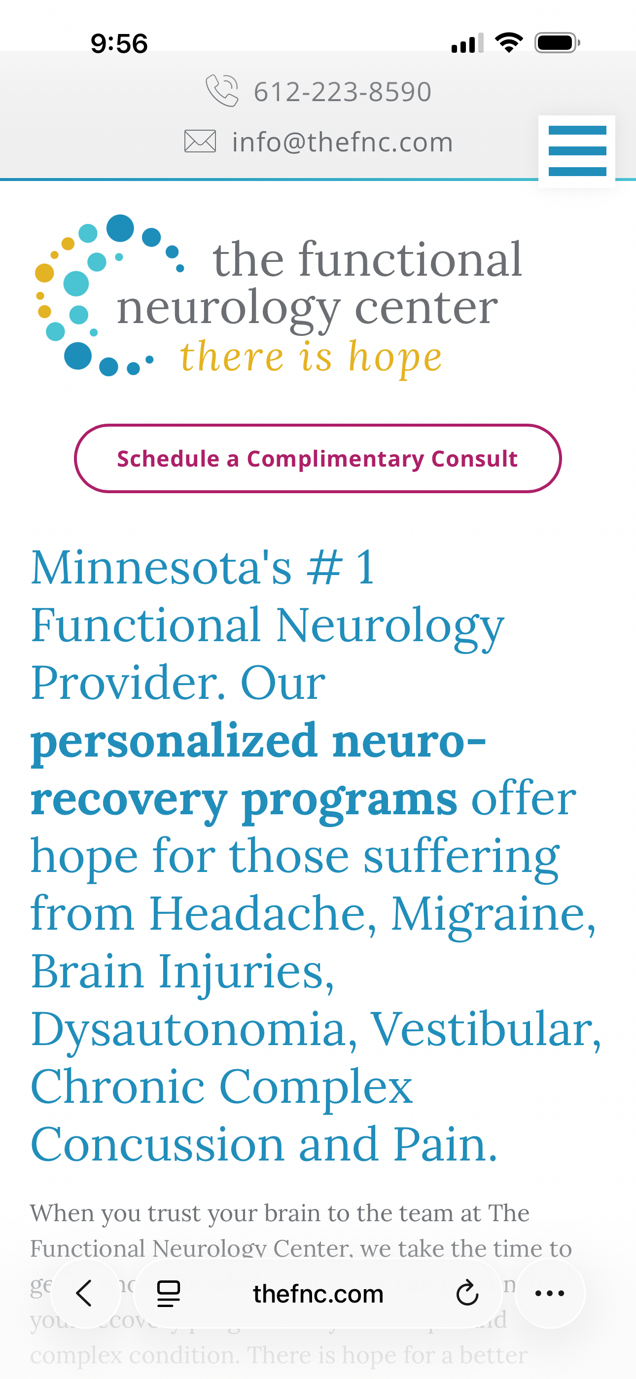 I've been living with chronic pain for 8 years after a workplace head injury. I used to walk like I was drunk until getting tubes in my ears. Now I lose my balance when my head pains and ear get bad, normally with weather. I’ve seen dozens of doctors of different practices. My stomach can no longer accept medicine, and I’ve been trying to find a way to see the Functional Neurology Center in Mankato, MN. They’ve said I’d be the perfect candidate, and I’ve seen multiple testimonials of patients with similar issues who had improvement after the week-long visit.