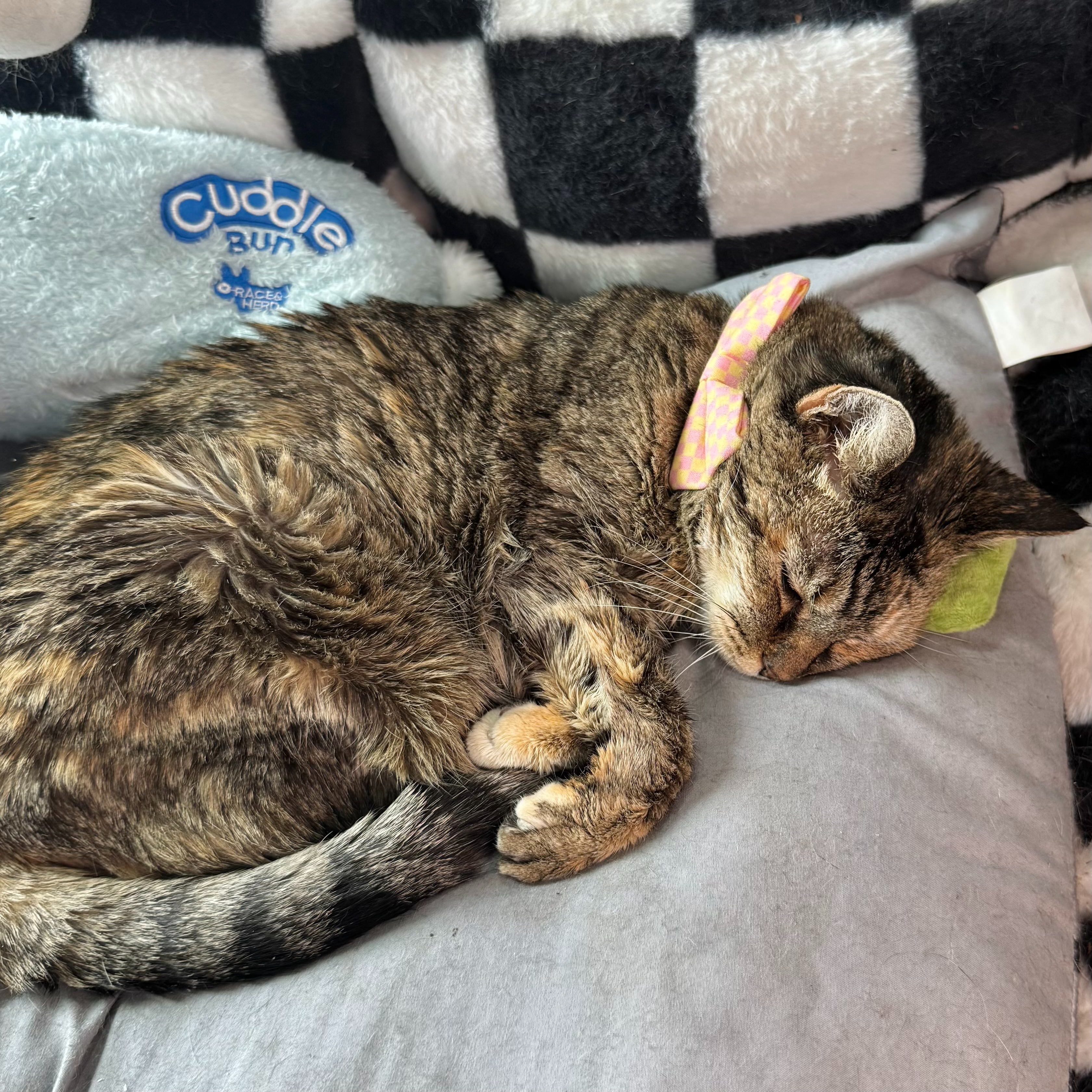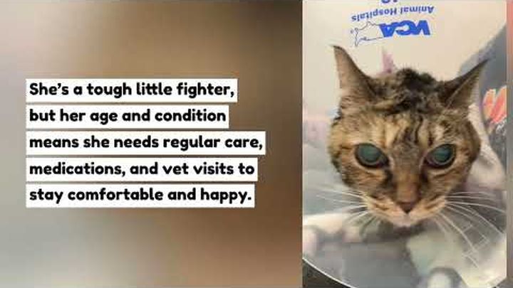She’s a tough little fighter, but her age and condition mean she needs regular care, medications, and vet visits to stay comfortable and happy.