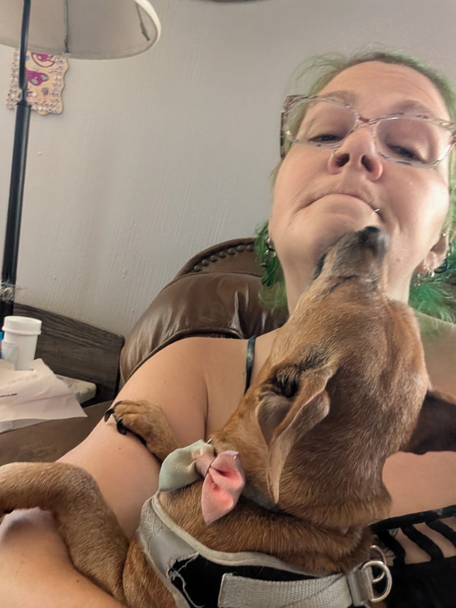 During the recovery process following a major surgery, Joye Evans not only finished her quarter finals at school but also moved to a new apartment, one with room for her two daughters and a nearby park to walk her dogs in. Then during the festivities surrounding the Fourth of July weekend, miss Mocha dislocated and mangled her front paw so badly that she now needs an amputation. She is currently on pain medication but Joye cannot afford the surgery after her own recent ordeals. Please help us raise the funds to save this happy little creature’s quality of life! She can have a fully functional and happy life once the damaged paw is removed. The surgery will be discounted, we just need to come up with the capital up front. Thanks for your concern and support!