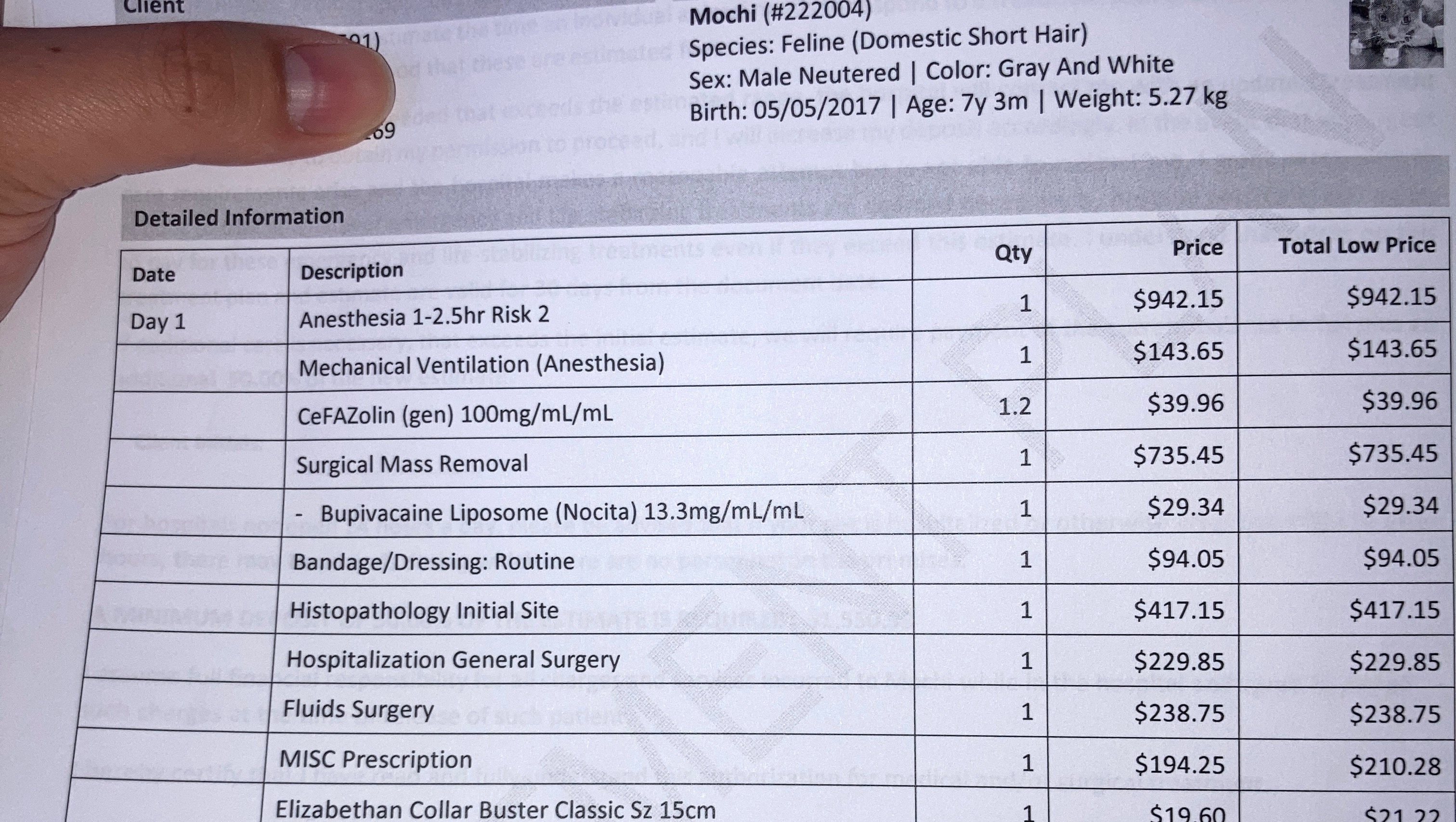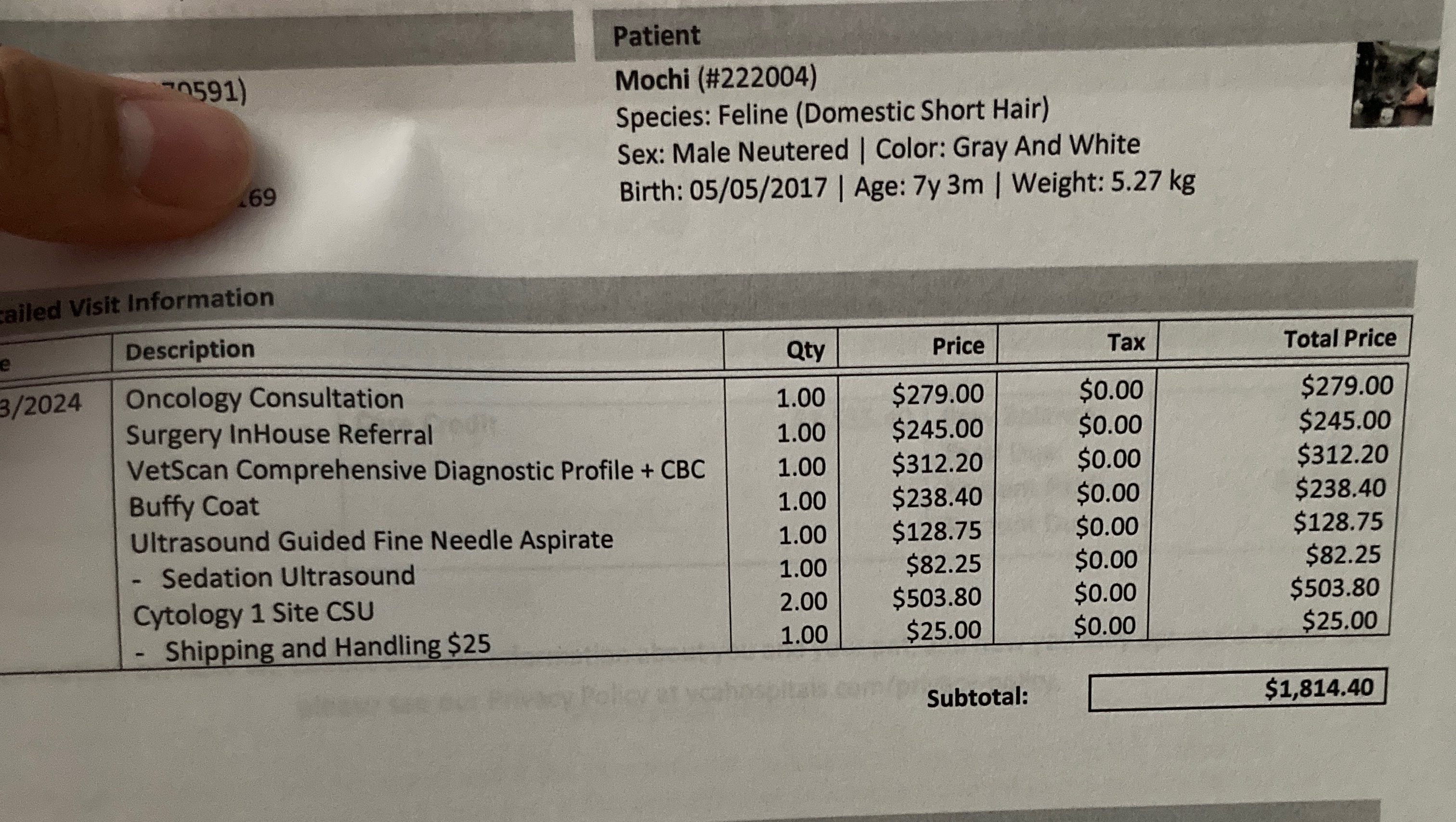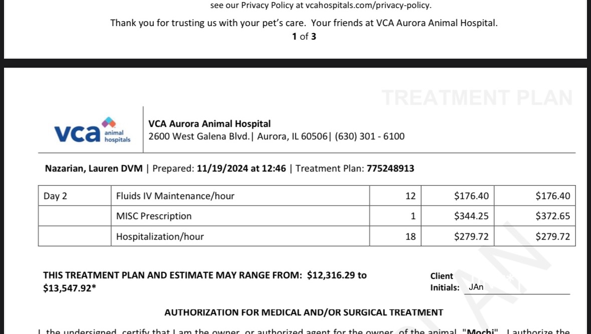 We have started treatment via prescription medications and chemotherapy to help prevent the cancer cells from spreading. However, he still has many hurdles to overcome. The oncologist said Mochi will need surgical intervention followed by additional chemotherapy. Already, we have surgical estimate to be over $3,000