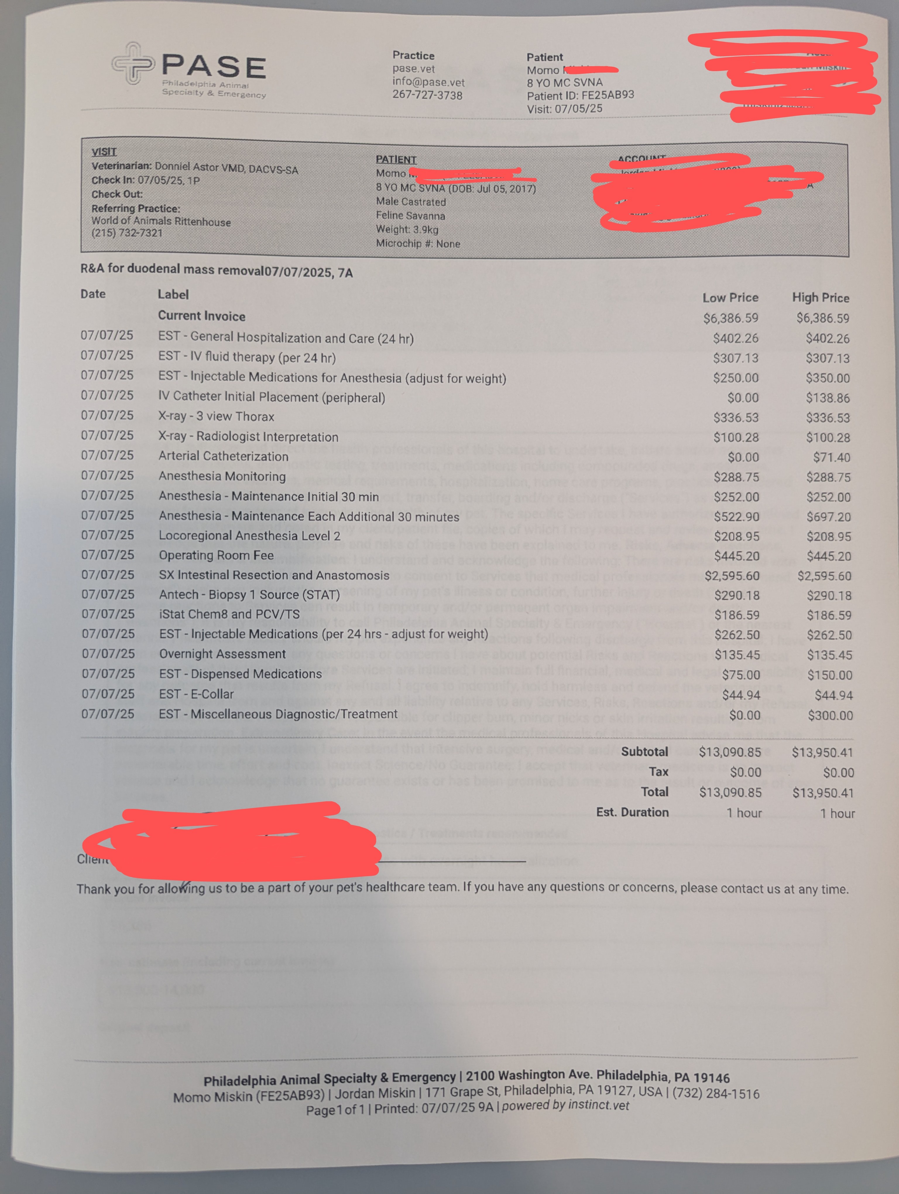 Unfortunately, we found out after about a week of not feeling well that Momo has a tumor in his small intestines. We are planning for surgery and depending on the biopsy, possible chemotherapy. We love Momo dearly and would do anything for him.