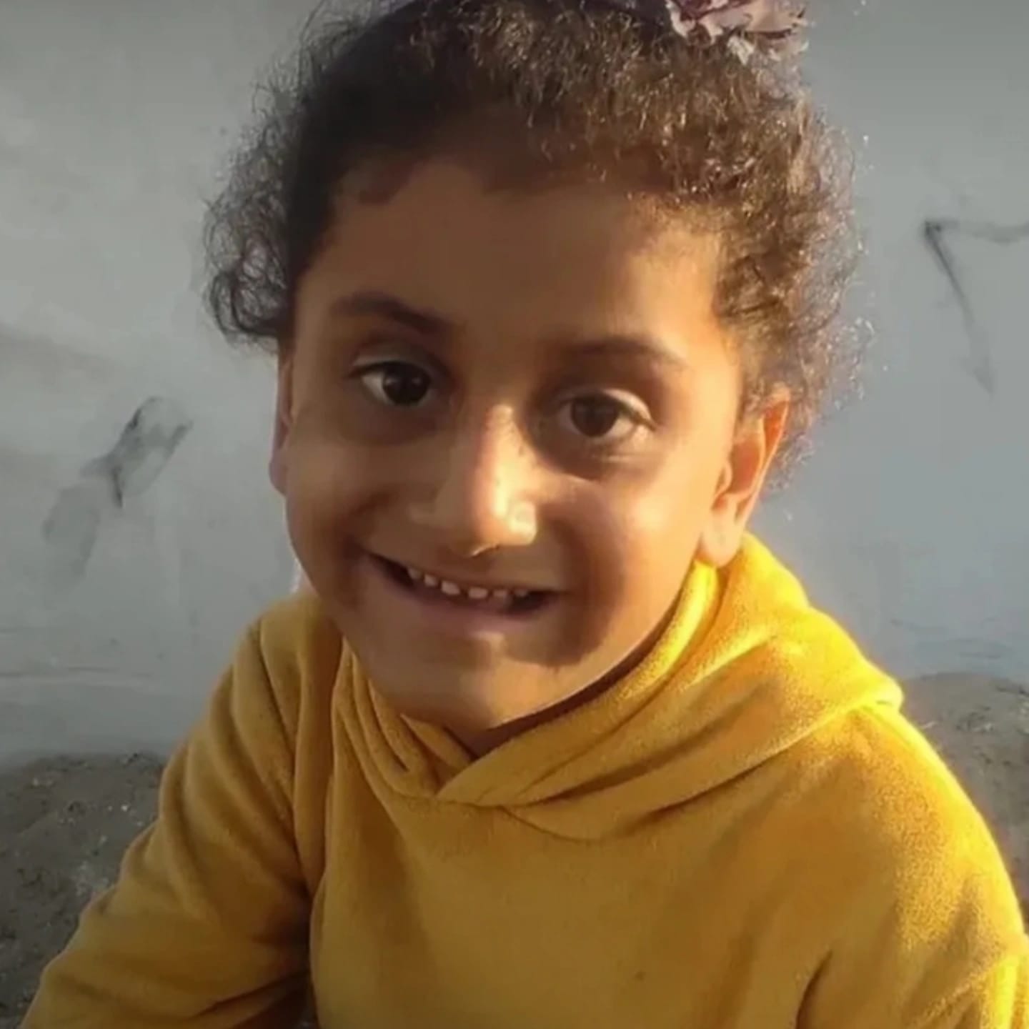 I am Mona, a little girl from Gaza, but the war made me grow up and bear pain before I truly grew up. Despite my young age, my heart carries a heavy pain that only God can bear. My life is very hard — I lost my home because of the bombing and destruction. My father is sick, and my mother is also ill, and I try to be strong for them.