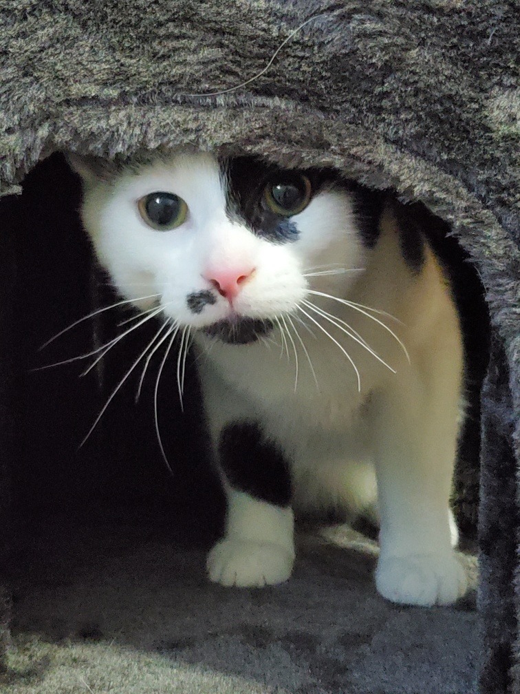 Moo was a rescue, part of a litter of 3 kittens. Between us and other family, we provided homes for his mother and siblings.