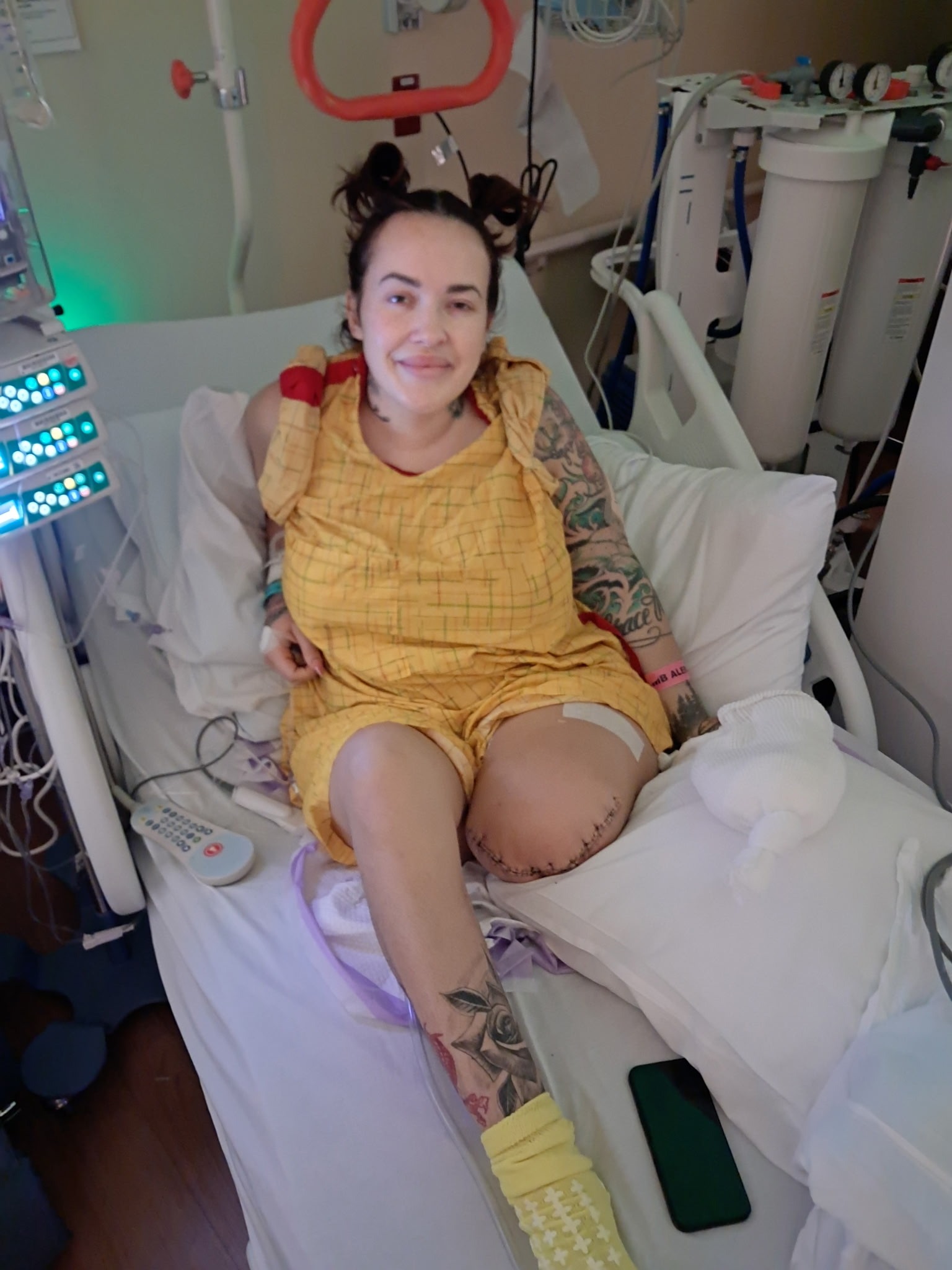 Morgan’s life has changed drastically overnight. It will take several months for her to regain her independence and learn to navigate her life with only one leg. Morgan has two children, Rio, age 2, and Mateo, age 11, who will also need extra care while she heals.