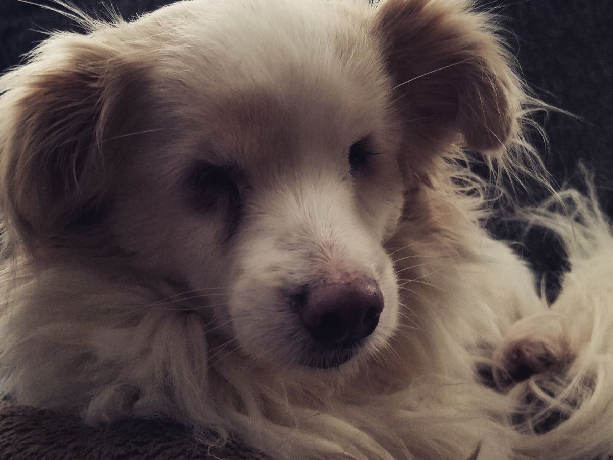 Mothra came to live with us on May 16th, 2017. The first thing she did was climb on the kitchen table. We still have no idea how she did this. She is a rescue who we were told originally came from a puppy mill. She is a papillon mix who was born with no eyes and is the bravest, most loving and funny dog I have ever known. She may be only 15lbs, but she is the heart of our house. The first to break up a fight, to "defend" our home from all threats (mainly squirrels on the roof) and to comfort anyone who cries. She absolutely rules over us all. She's never met anyone she didn't immediately trust with her life, has waded out into belly deep snow to save her brother from the snow shovel and is beloved by all who meet her.